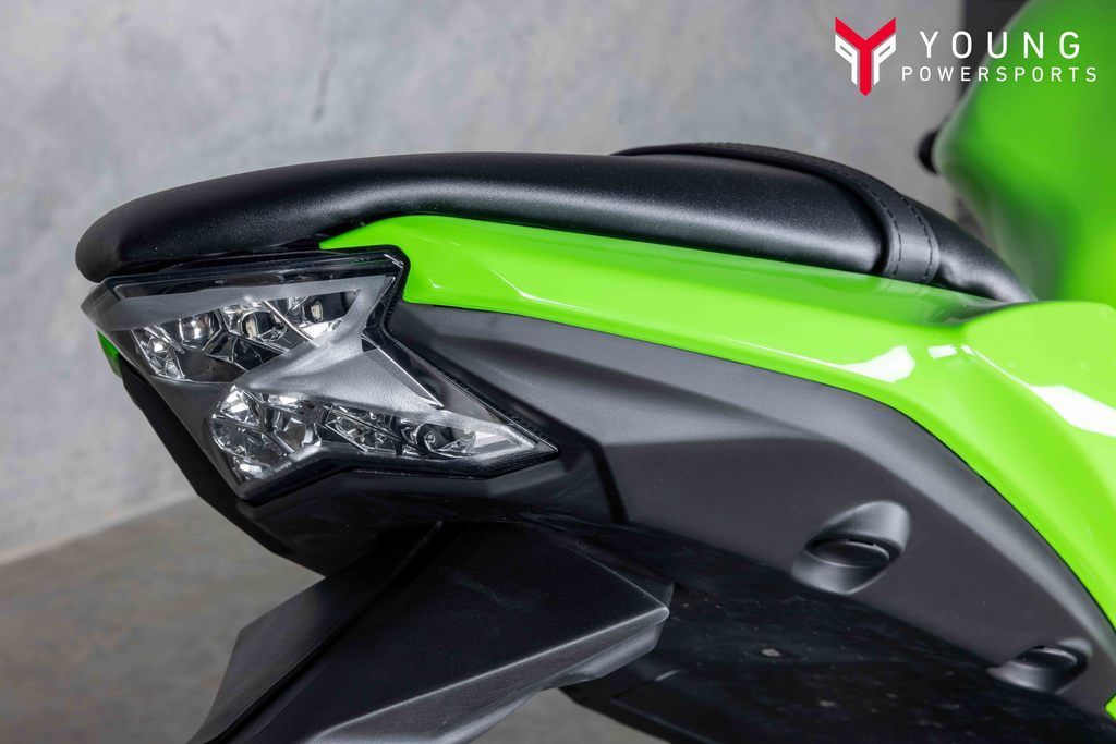 The Ninja® 650 motorcycle stands out with angular styling, aggressive headlights, an upswept tail cowl, and a TFT color instrument panel.