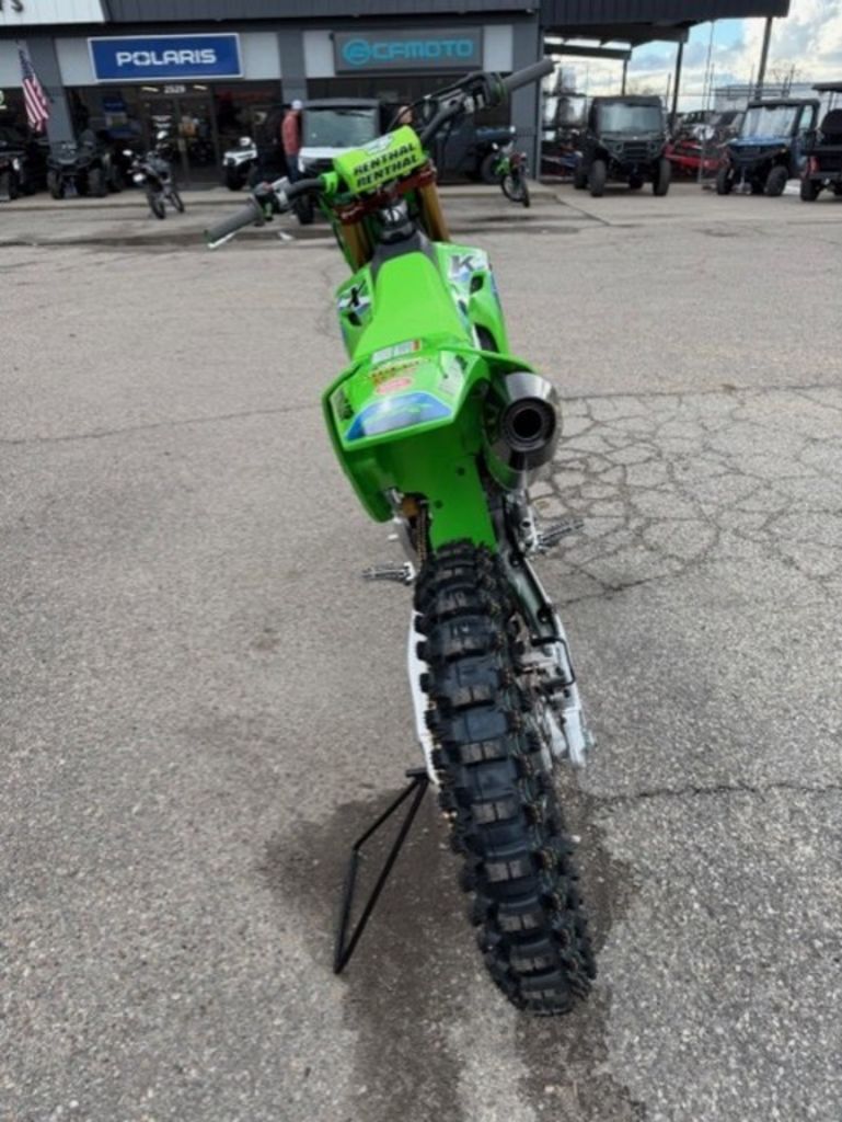 With agile handling, a strong and lightweight chassis, and ERGO-FIT® adjustable components, you’ll experience an unmatched race-winning advantage on the KX™450SR motorcycle. Stand out from the crowd with factory-edition styling, featuring Monster Energy® Kawasaki race team-inspired graphics, Lime Green handlebar pad, Metallic Magnesium Gold cylinder head cover, and a Hinson clutch cover.