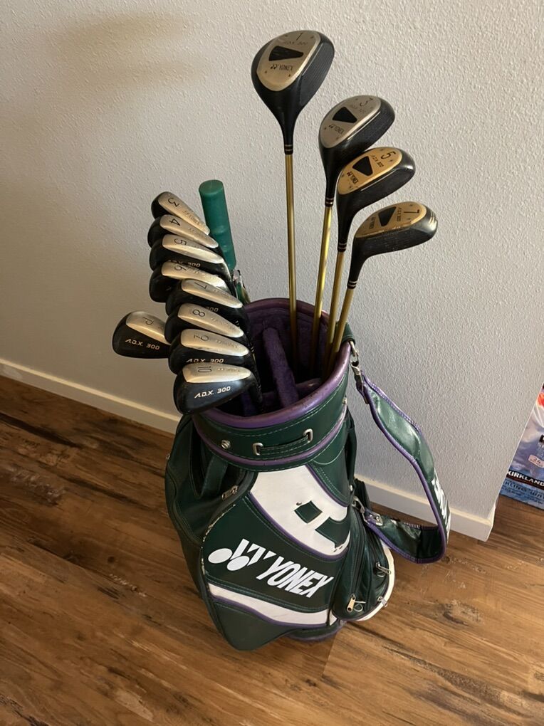 CashAppHere is a beautiful set of Yonex clubs perfect for improving your game they are Japanese high quality and lightly used clubs . They are super sharp and very well maintained . shafts are stiff flex, the bag has a tear on the strap but it’s still carries the bag good shown in pics .