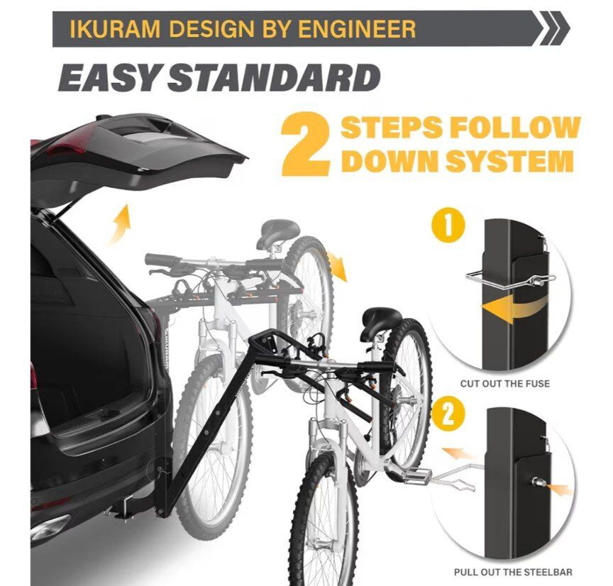 Easy fold-down Arms: Be folded up quickly when bike racks not in use for compact transport and easy storage.