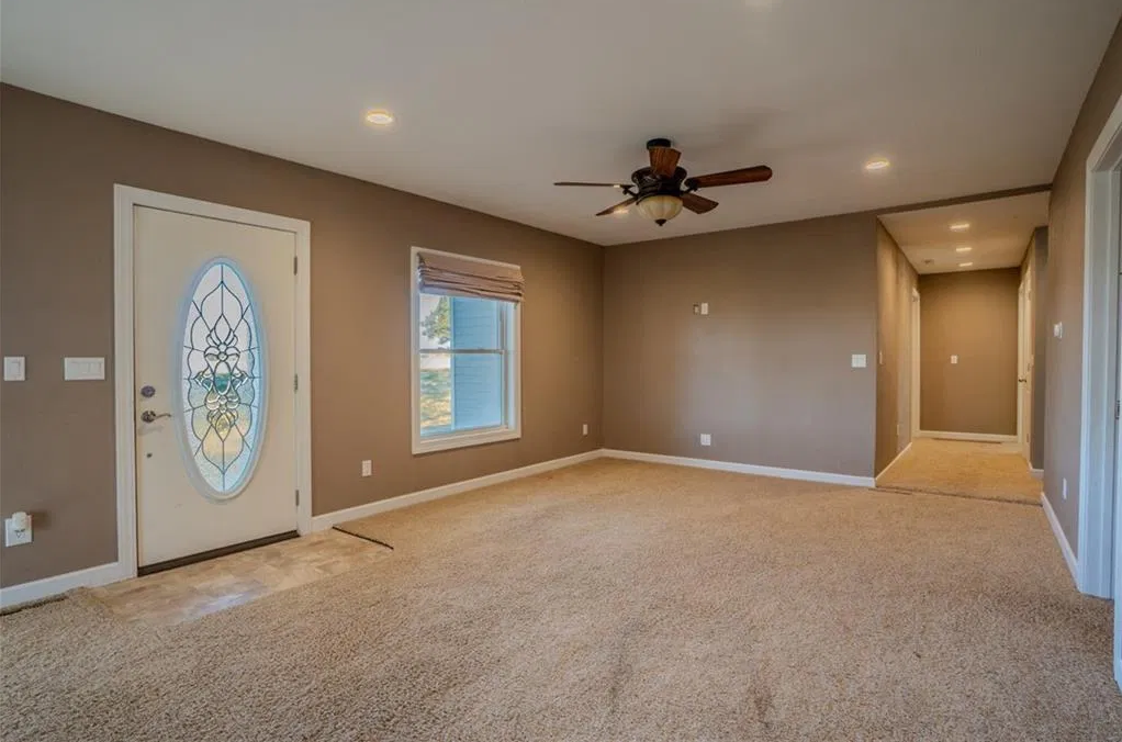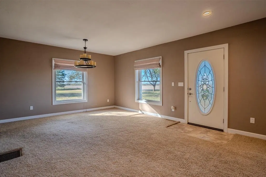 Charming Farmhouse Modern Comforts and Country Appeal! Nestled on a beautiful 3.75-acre treed lot, this 2,500 sq ft 1½-story farmhouse offers the perfect blend of rustic charm and modern convenience. With 3 bedrooms and 4 full baths, there's plenty of room for family, guests, and all your favorite hobbies. The home sits on a hard-surface road with public water, internet service if you work from home and a peaceful location giving you the best of both worlds—country living without sacrificing convenience. An oversized detached garage and outbuilding/lean-to provide ample storage or workshop space. Inside, you'll love the spacious layout and warm character throughout. The large media/family room with its own full bath and wet bar is a showstopper—ideal for movie nights, entertaining, or even a private guest suite. Whether you're relaxing under the shade of mature trees, hosting gatherings in the open yard, or enjoying quiet evenings in this serene setting, this property delivers comfort, space, and endless possibilities. Come experience the charm of country living—modernized for today's lifestyle!