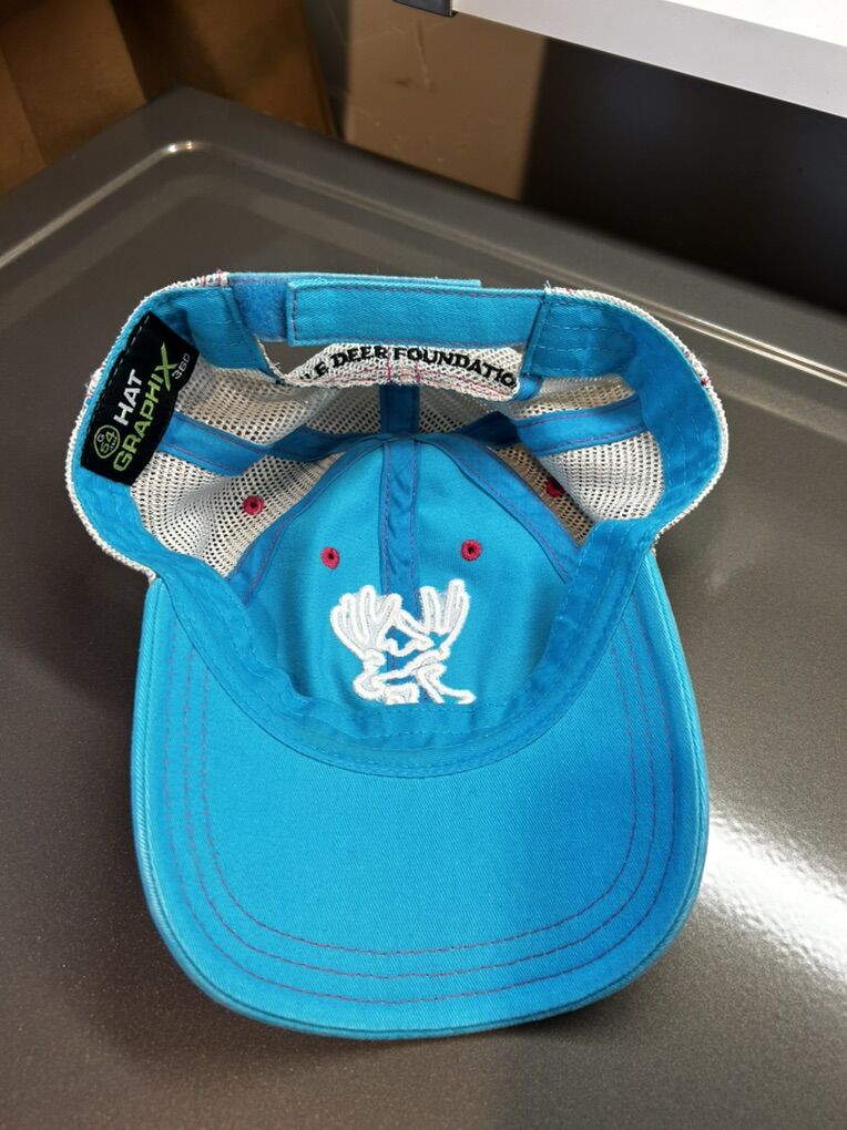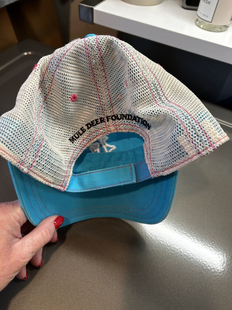 Venmo in like new condition, turquoise and pink mule deer foundation, baseball hat. Curved brim, mesh cap Velcro adjustable strap. Clean smoke free home. Cash or Venmo. Pick up in Alpine.