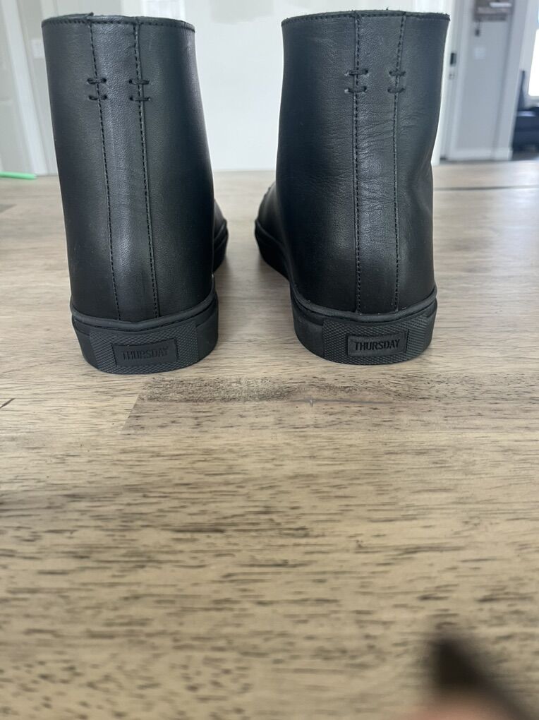 Brand new Thursday Boot Co. men’s black leather dress shoes — never worn, excellent craftsmanship and quality. Perfect condition. Paid $90, just looking to get my cost back. Size 9.5