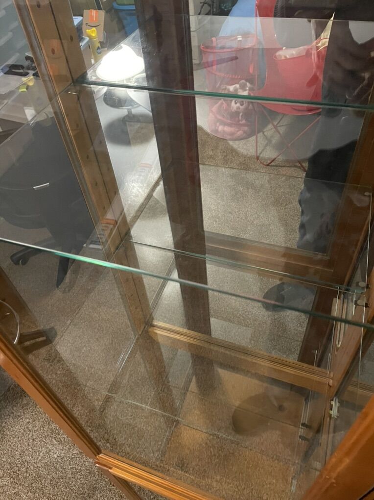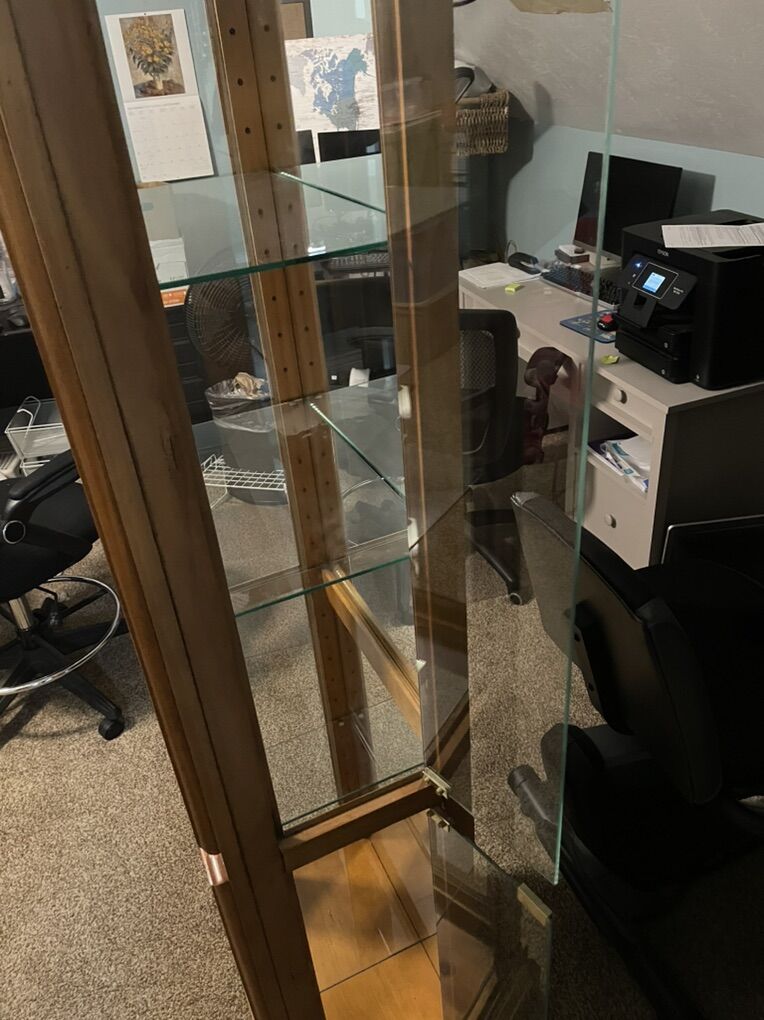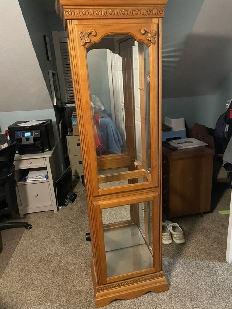 76 high, 13.5 deep, 22 wide Solid wood 4 glass shelves with a light $120 OBO