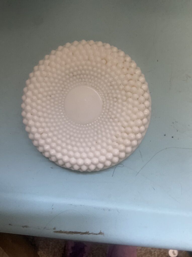 VenmoWhite glass Westmoreland Hobnail Ashtray. From the 1950s.
