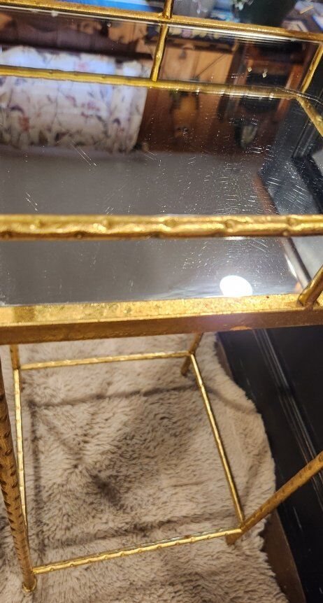 VenmoUsed gold and mirrored end table forsale. height 26 inches by 1 ft by 1 ft. It's a square design. Text only. Cash or venmo only. Pickup in Midvale. Please see my other ads. t Thanks for looking!