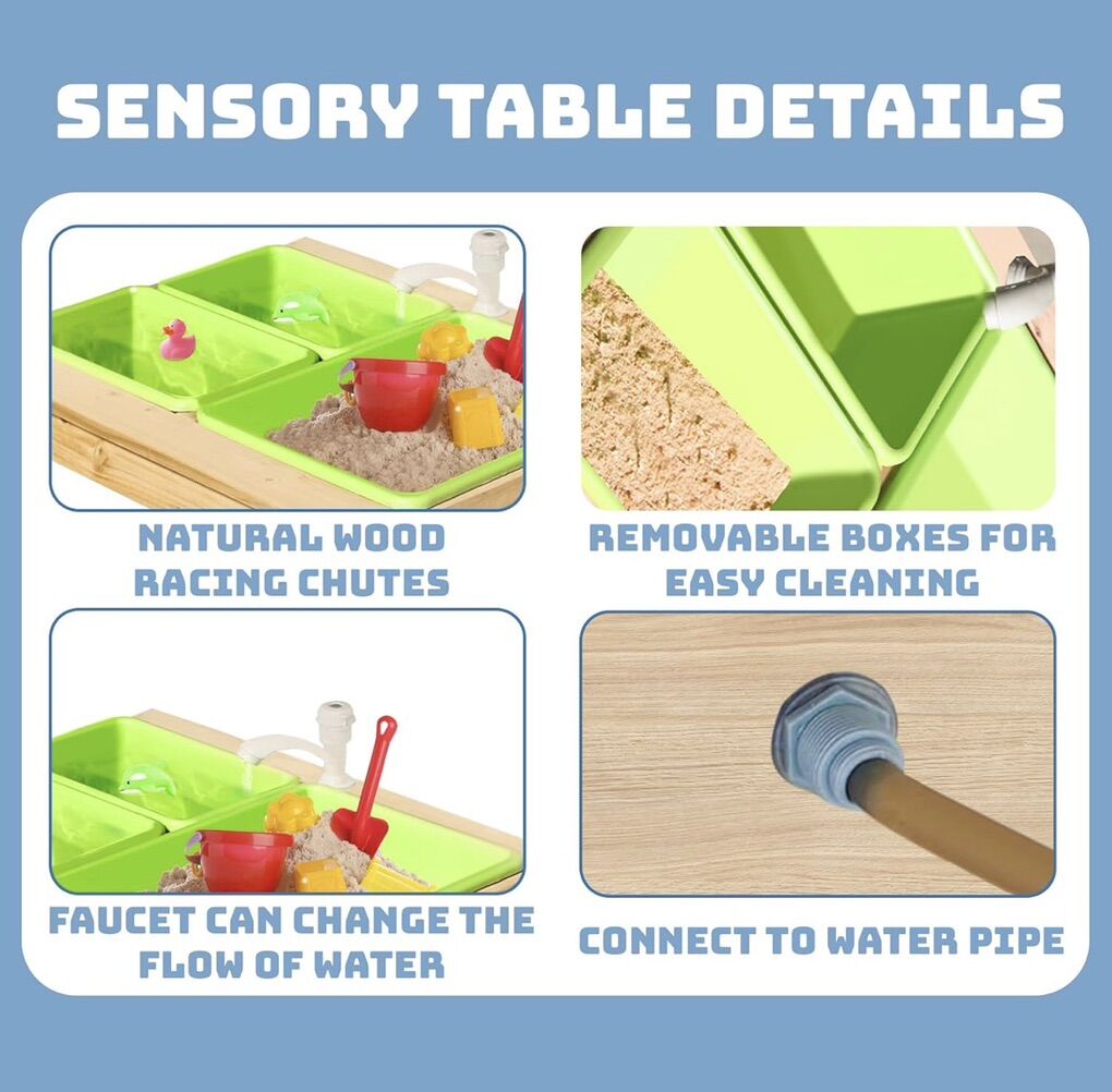 VenmoKids Sensory Table, Wood Sand Table Playset for Kids, Outdoor Wooden Toy Play Water Table Set for Boys and Girls(Natural1)