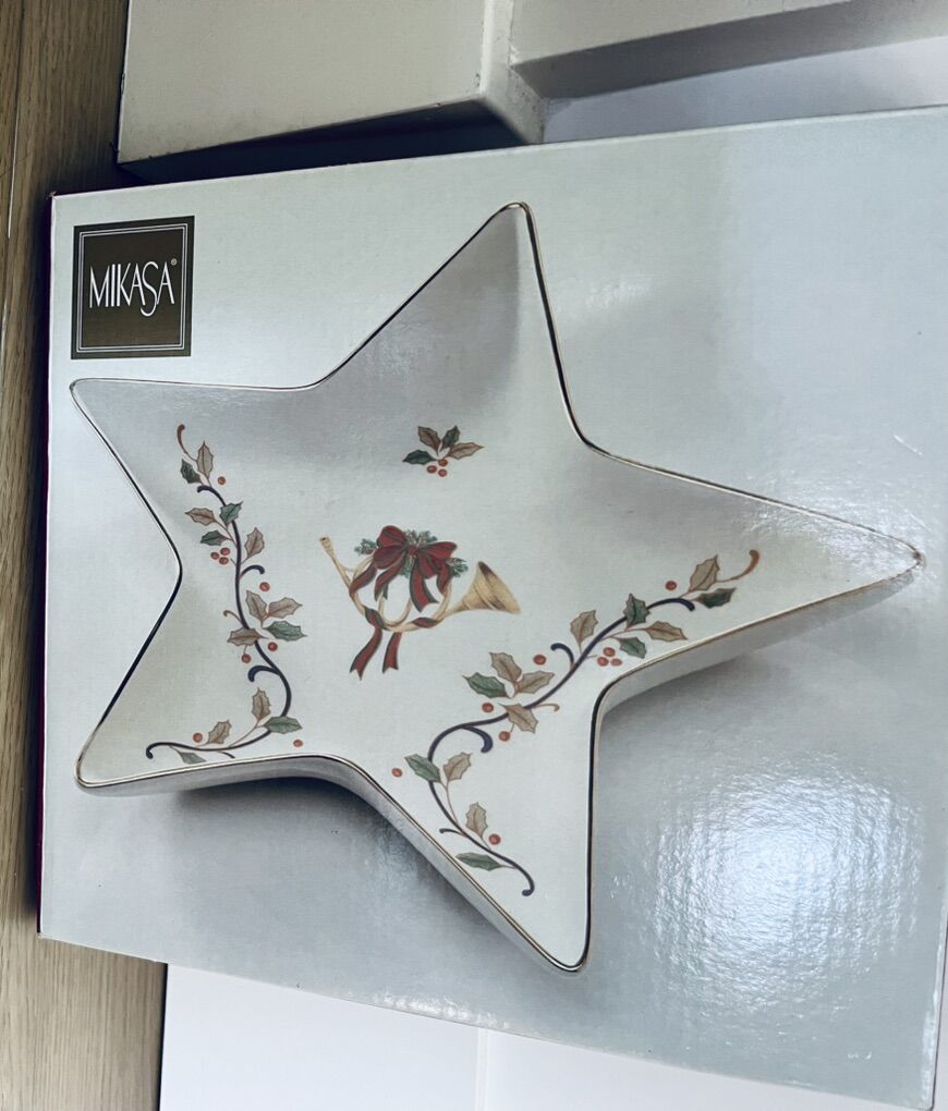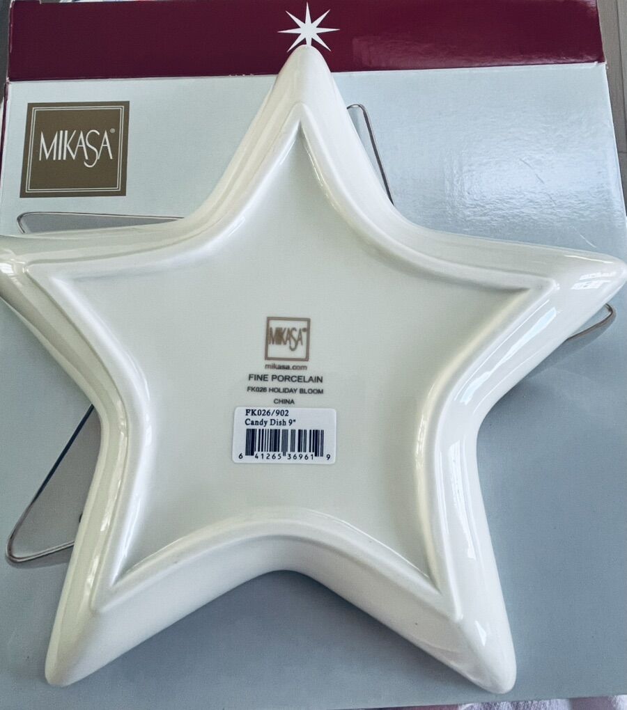 VenmoMikasa Candy Dish Holiday Bloom FK026 Porcelain Star Shape Nuts Treats Holly