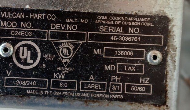 VULCAN STEAMER C24EO3 3 Pan Boilerless Convection 208/230V.