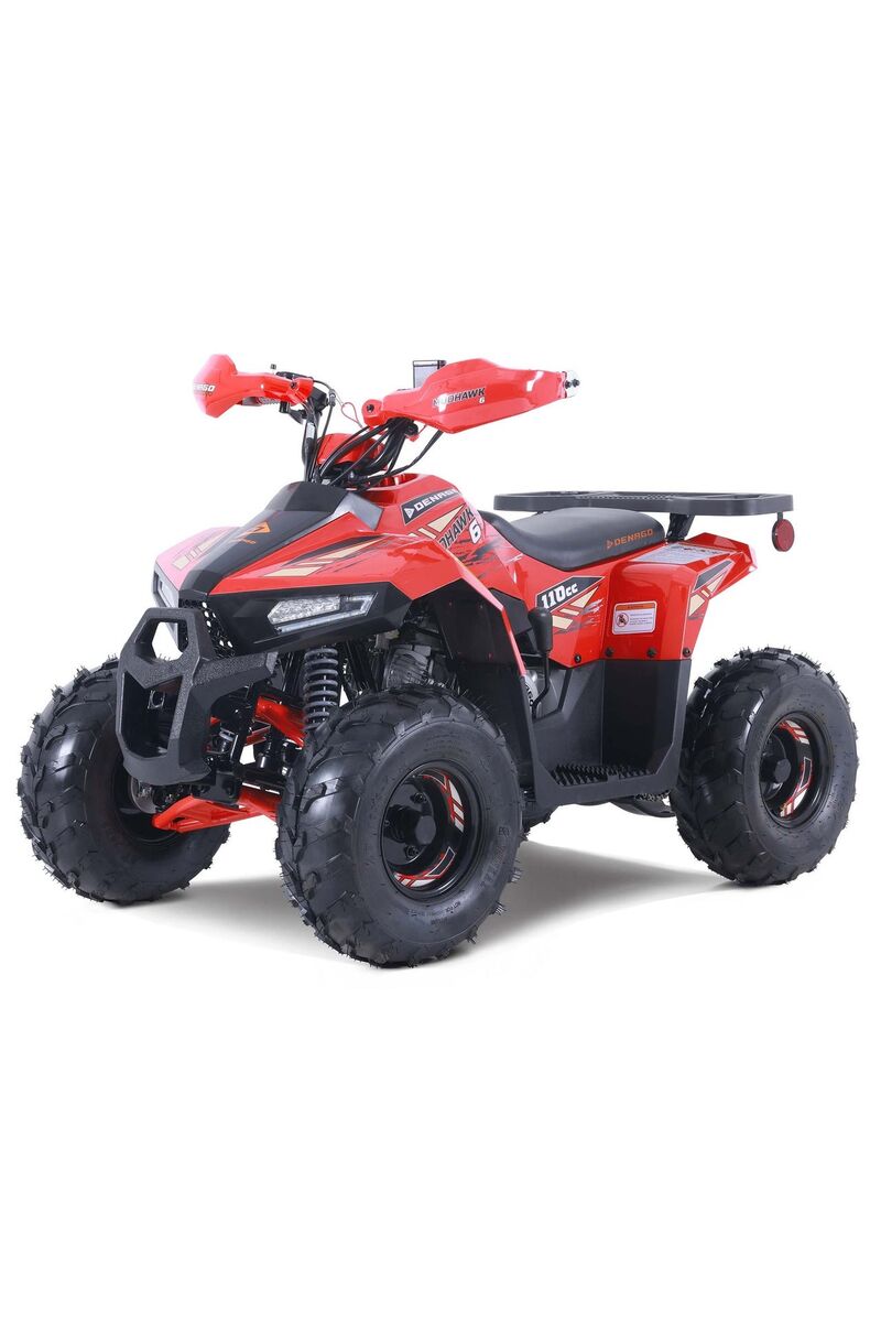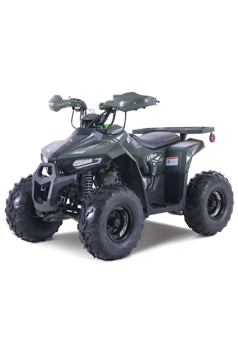 The perfect youth ATV for riders aged 6 and up! The Denago Mudhawk 6 is the safest and most powerful choice, featuring a class-leading 107cc OHC air-cooled 4-stroke engine and an easy-to-use Fully Automatic CVT with Reverse (F-N-R).