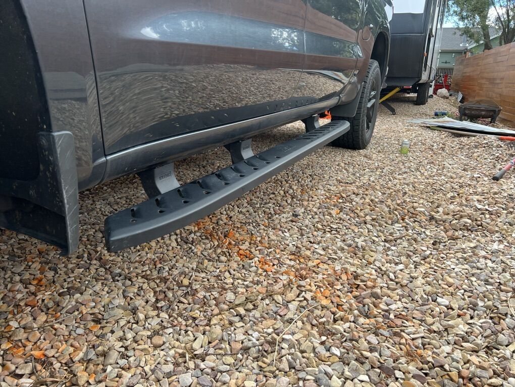 ZelleLightly used Indented louvers along step area provide maximum traction Textured Black powder coat finish – resistant to corrosion Robust one-piece stamped Steel construction Injection molded bracket covers provide a complete and finished look About $700 new.