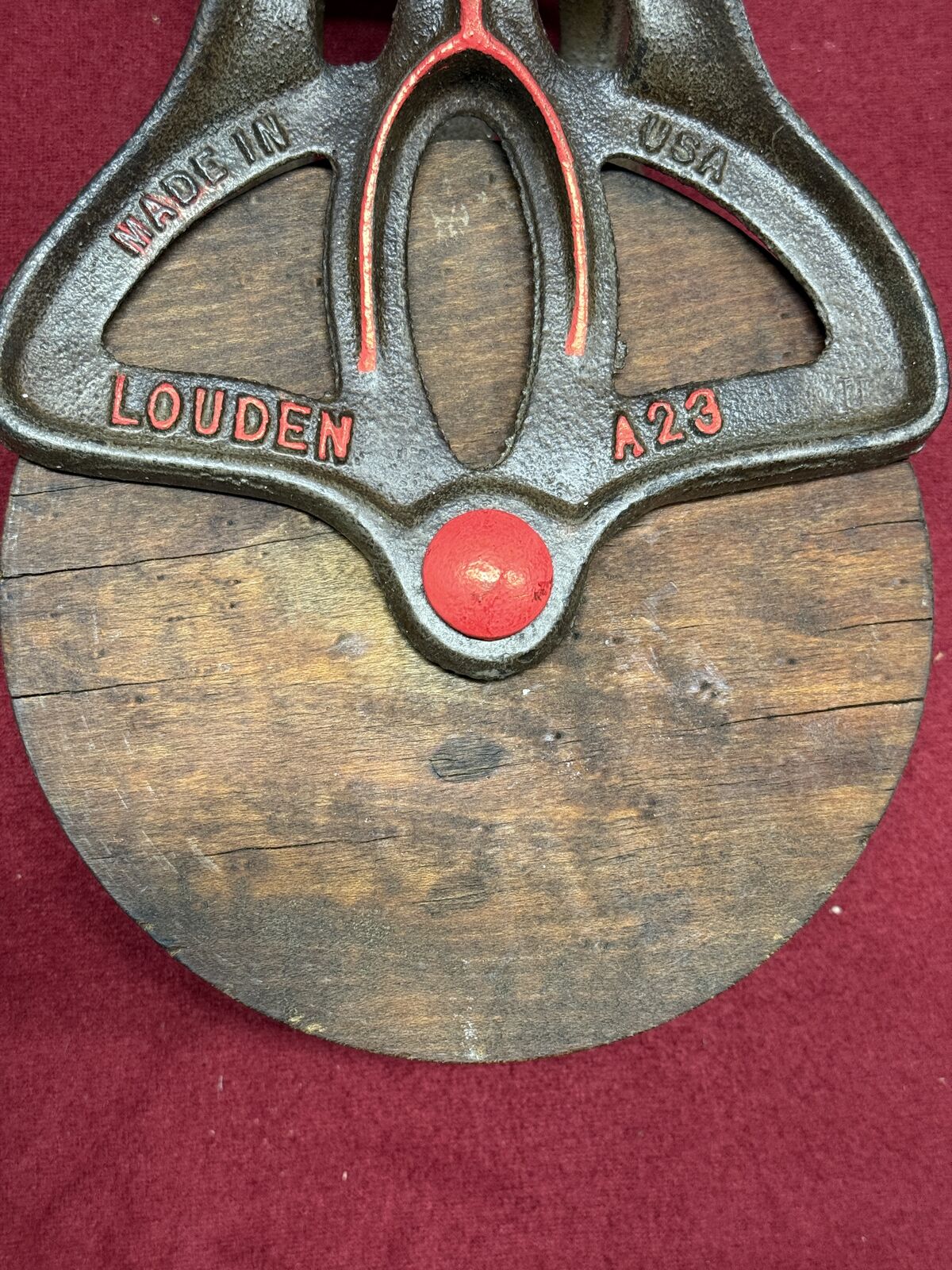 CashAppComplete, original and in working condition. I cleaned it up and embellished it a bit. The wood part is 6 inches in diameter and 1 3/4 inches thick.