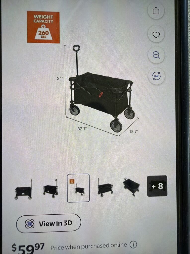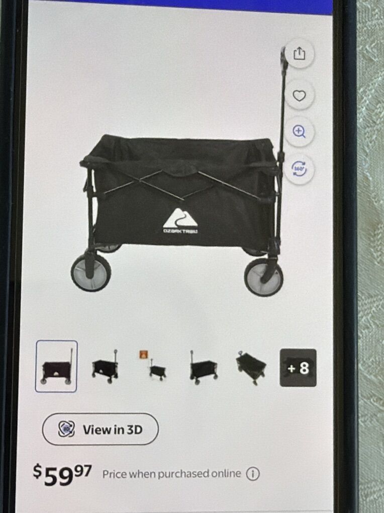 VenmoOzark Trail Foldable Cart brand new but no box. Walmart has these for $59. This one is $30 without the box and it has never been used.