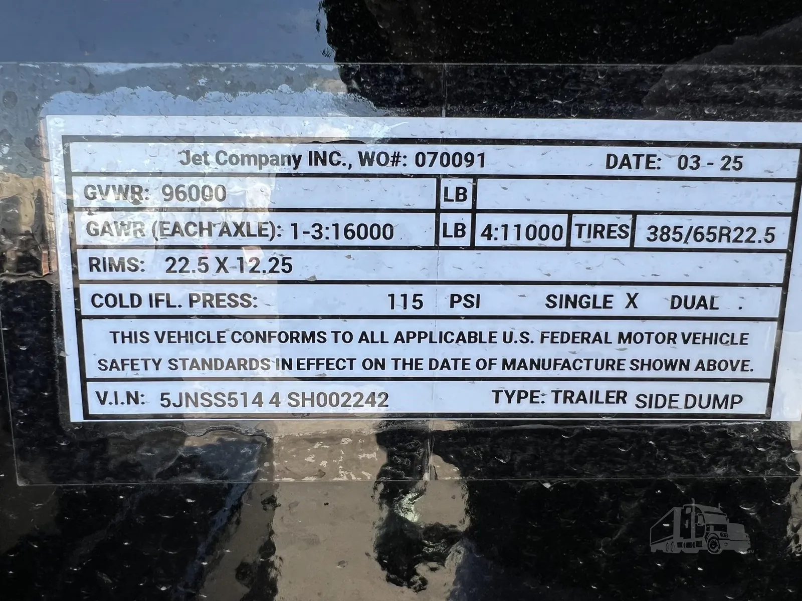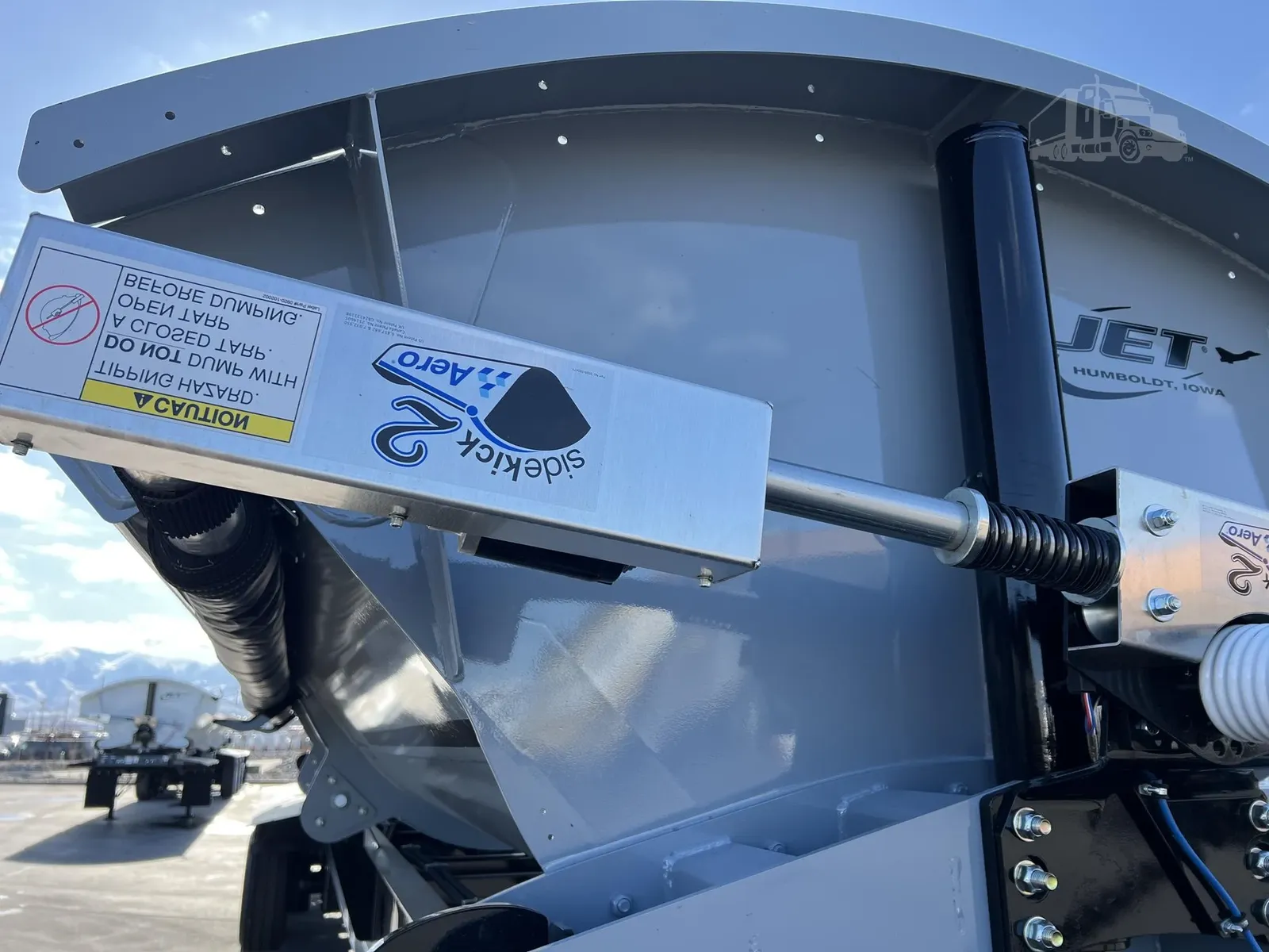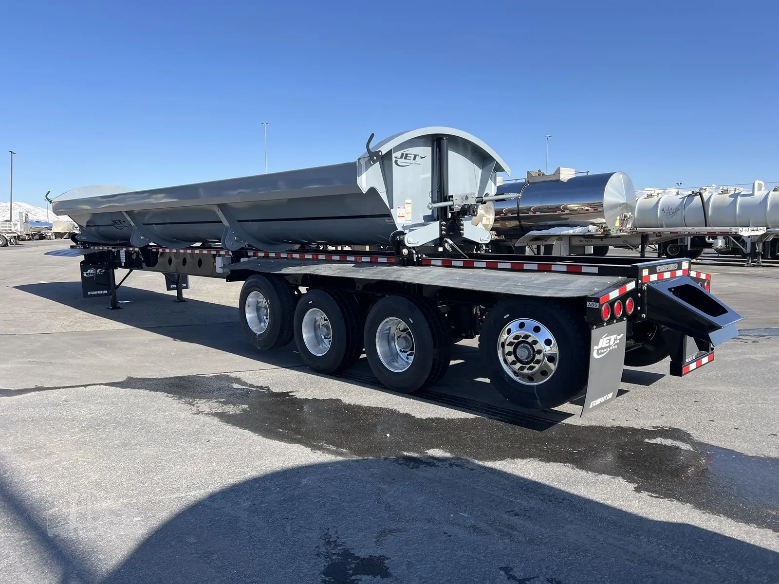 Ready and on the Ground today! This Quad Axle Battleship Grey Tub on Black Frame JET Side dumper is Beautiful!. The 104k Price is out the door pricing. (Includes FET tax) No nonsense and No hassle. Give us a call today! If Grey on Black is not your color choice we have other units in stock!