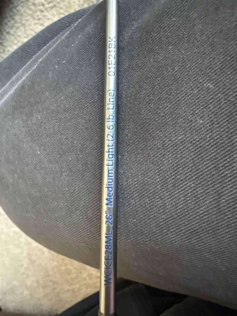Rod is 2 years old. No damage Cork is slightly stained from having a reel taped to it 28” medium light great for trout