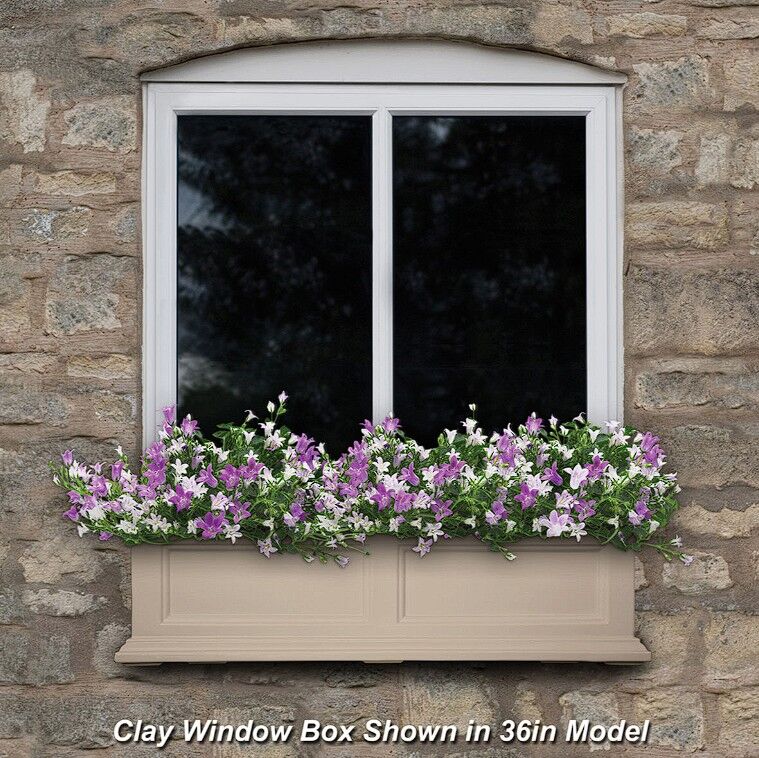 Brighten up the exterior of your home by adding color and beauty with the Mayne Fairfield Window Box. This durable construction offers a low maintenance solution and cleans with just a simple rinse of a garden hose. Accent your home with a beautiful New England window box design Mayne molded plastic window boxes are made from 100% high-grade polyethylene This window box features a double-wall design creating a water reservoir Outside Dimensions: 48"L x 11"W x 11"H. Inside Dimensions: 44"L x 7"W x 8"D Water reservoir capacity is approximately 4 gallons, soil capacity approximately 9.5 gallons Includes 4 wall mount brackets with a black powder-coated finish