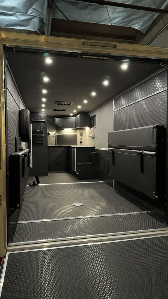 Everything runs on solar: fridge/freezer, A/C, outlets, lights — the whole setup. Highlights: