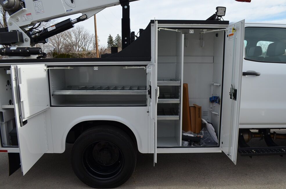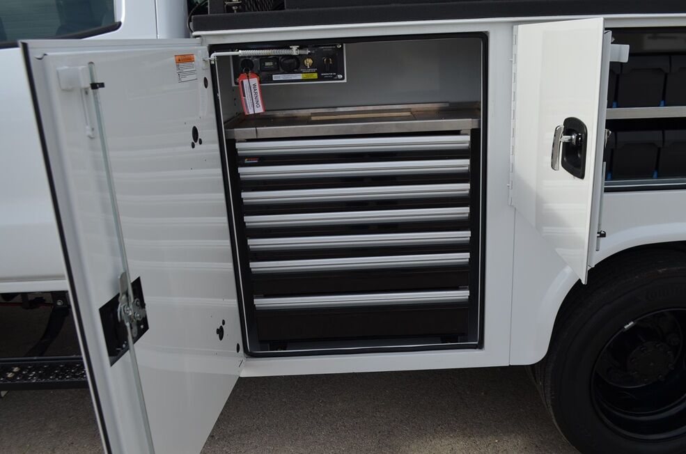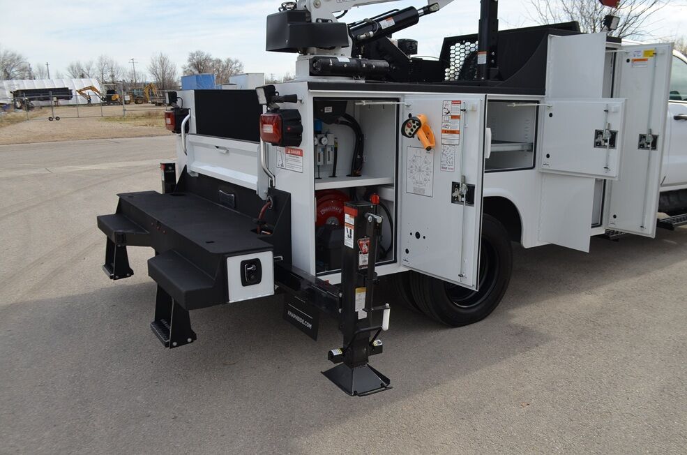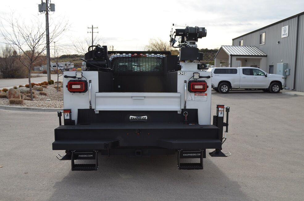 2024 Knapheide 4500 HD, 9', heavy duty 6 compartment service bed w/ acetylene & oxygen bottles compartment. Rear bumper/bench with compartment for bars/shovels etc. 4 recessed tie downs in bed. C-Tech 7 drawer pack toolbox. 14 nut/bolt bins. 2 side & 2 rear LED work lights.