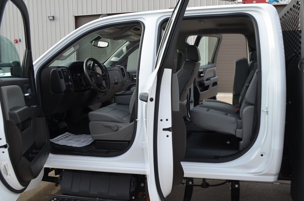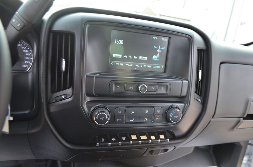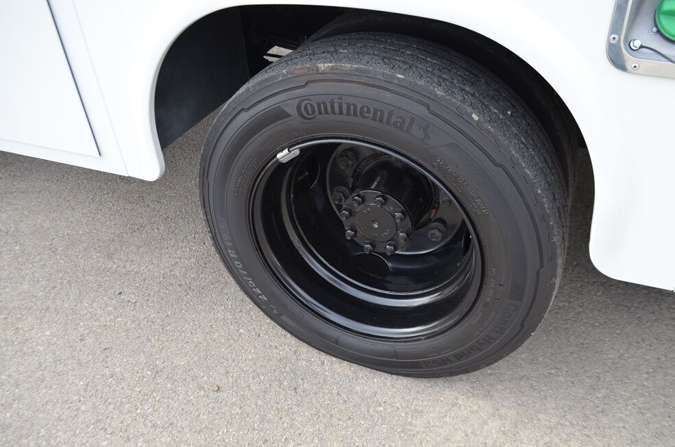 Rear trailer hitch and trailer brake controller. Front and rear strobe lights. Backup alarm. Crew cab 6 person seating, front center fold down console. Air conditioning. Power windows and locks. Tilt wheel. Auto headlights. Cruise control and delayed wipers. Traction control. AM/FM radio. Continental Conti HS3 225-70-19.5 tires, load range G.
