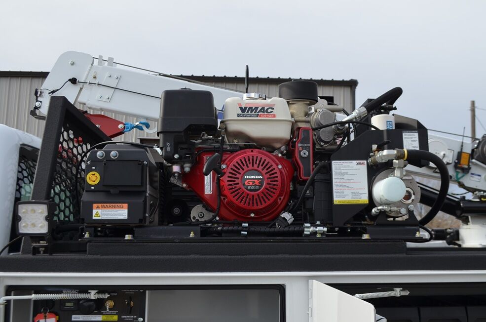 VMAC G30+GEN combination generator and air compressor. 3,600 watt, 120V or 240V generator. 25 CFM rotary screw, 100 PSI air compressor w/ air dryer. Air hose and reel. Honda GX390 gas engine driven with electric start.
