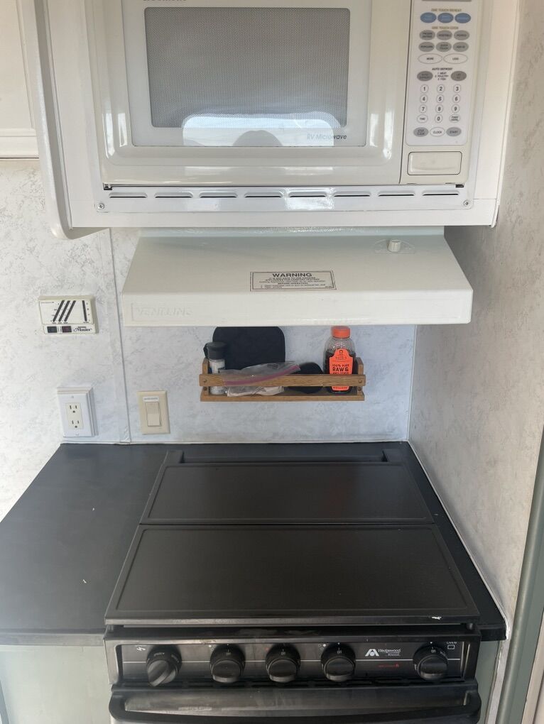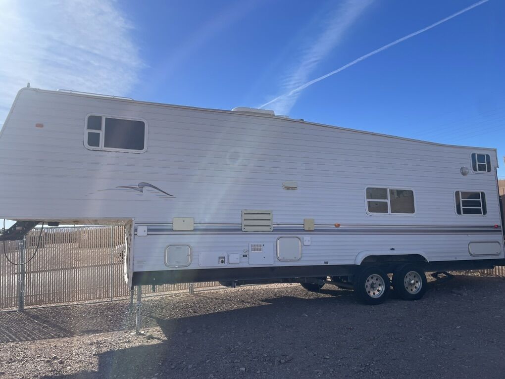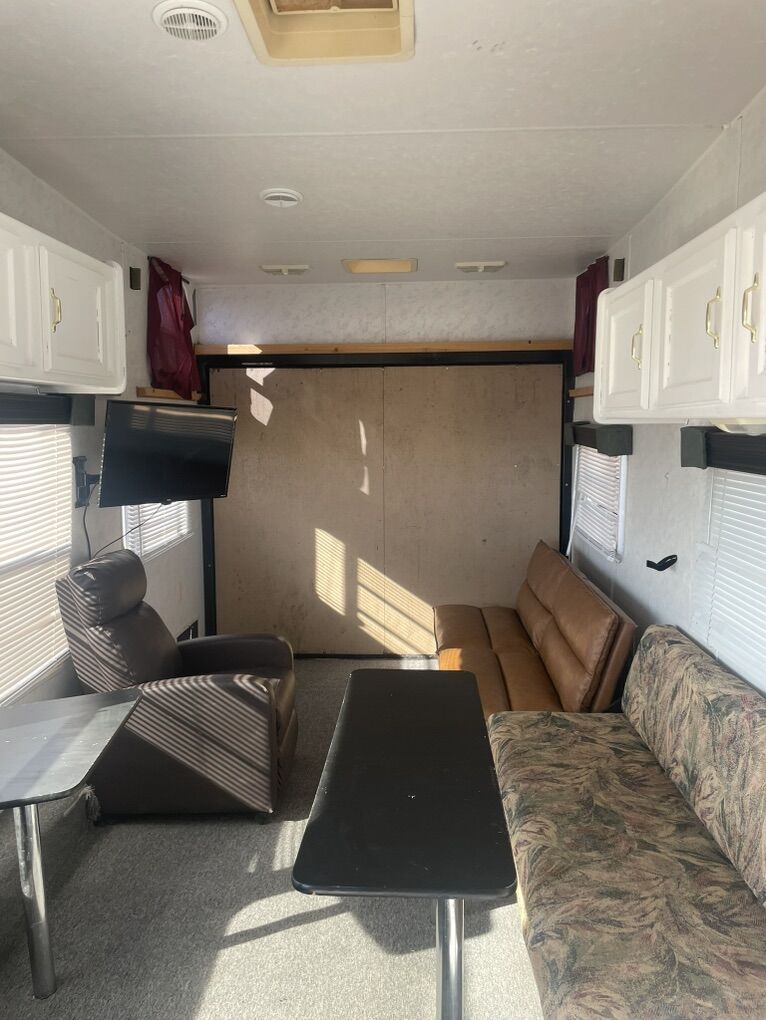Selling our well-loved 2001 Nomad SportWagon 5th Wheel Toy Hauler. It’s in good working condition with normal wear from regular use, and it’s been updated and cared for over the years. The bunk beds have been removed from the back.