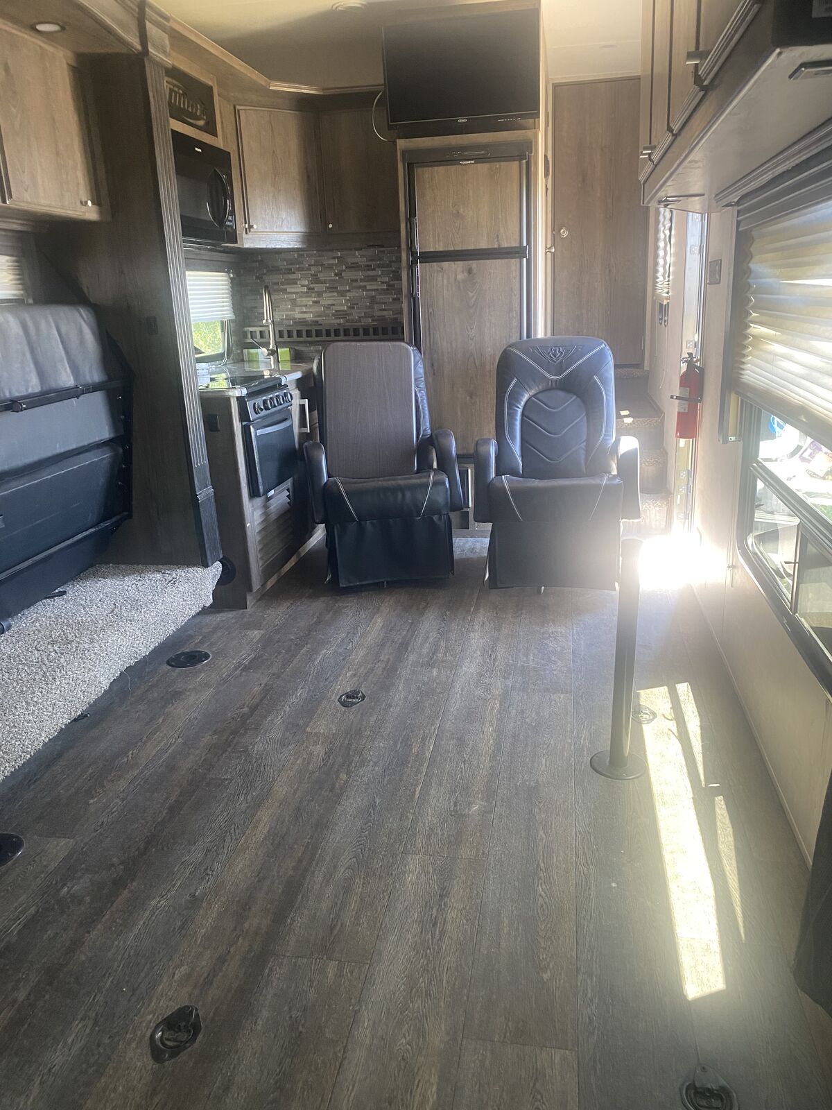 PRICE DROP. 2019 Attitude toyhauler, 2 slides, open 14' + concept. Solar panel on roof, 14 ply tires, 4000 Onan generator with approximately 800 hours, was serviced last year but was not used at all in 2024. Elec 5th wheel hitch, TV that I never used, double door in bathroo. A/C, Great condition!