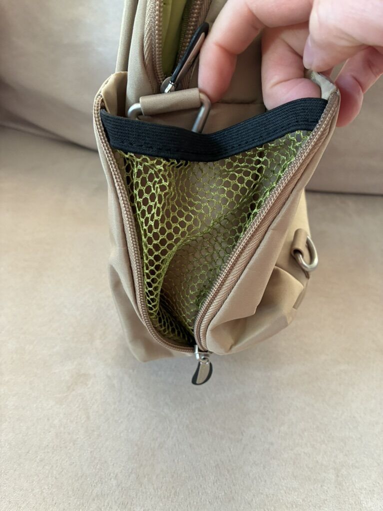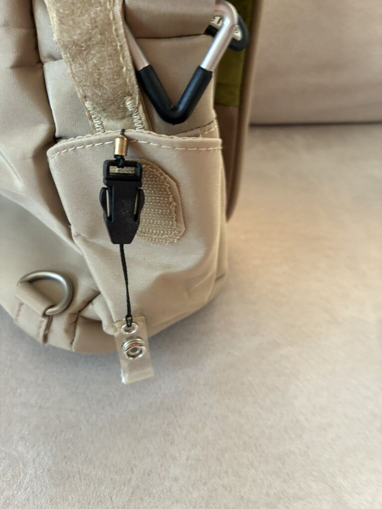 Travelan is known foe clever security features in their travel bags. This bag has a carry handle, shoulder strap and backpack strap options. The backpack straps tuck nicely into a zipper pocket on the back of the bag. This bag has 5 zipper pockets, 8 slit pockets, 6 card holder pockets and two side pockets, one with a zipper to accommodate different size items the other with a built in key reel so you don’t drop your keys. Clever magnets keep all flaps secured.
