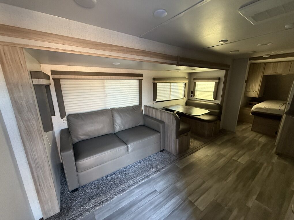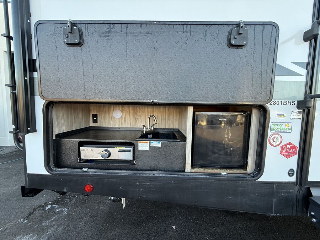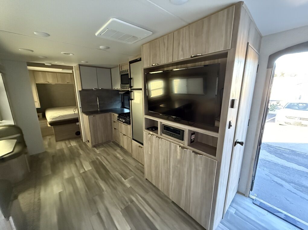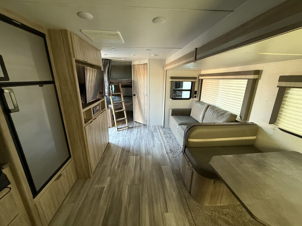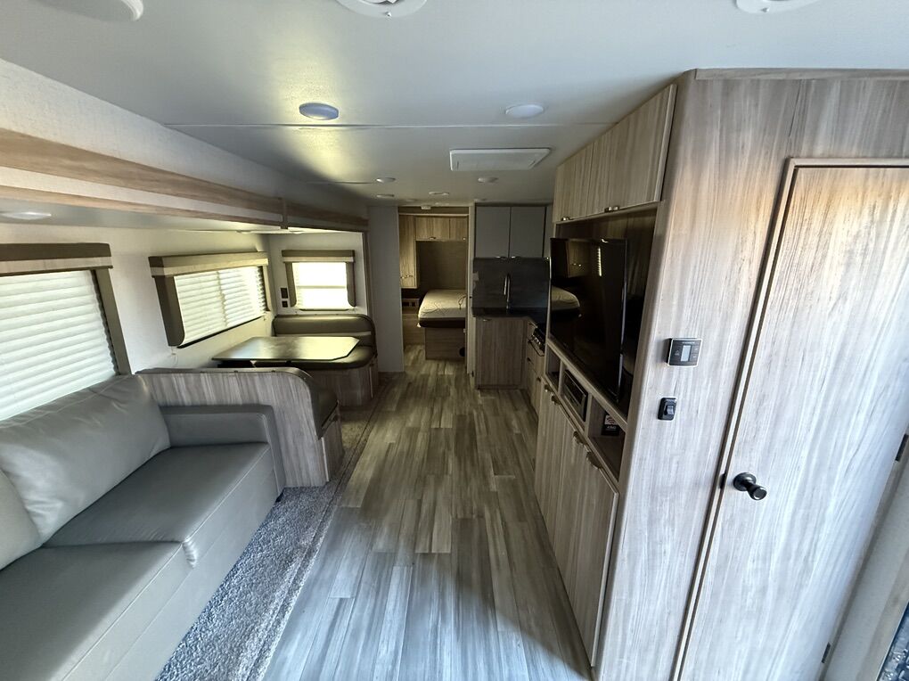 Step inside the 2801BHS, and you'll be greeted by a bright, airy, and inviting space perfect for both relaxation and entertainment. The intelligent layout maximizes every inch, offering versatile seating and sleeping arrangements to accommodate friends and family comfortably. The spacious interior boasts a well-equipped kitchen with stainless steel appliances, a large refrigerator, and ample counter space, ensuring you can whip up your favorite meals with ease. The entertainment center features a high-definition television and an integrated sound system, setting the stage for relaxed evenings after a day filled with exploration.