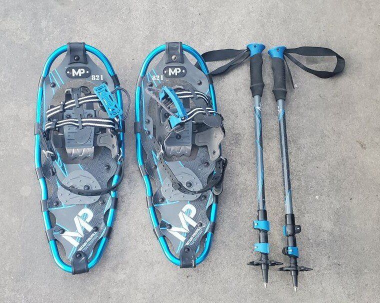 VenmoNice 21" Mountain Profile Snowshoes in excellent condition with adjustable poles. Great snow shoes to go winter hiking and exploring the back country in the mountains. Snowshoes have straps that will adjust to the size of your own shoes. Snowshoes are around 21". Comes with adjustable Mountain Profile poles. Poles can be adjusted to any height but have lines to adjust from 100cm-135cm. Great quality Yukon Charlie's Snowshoes and poles. Text please.