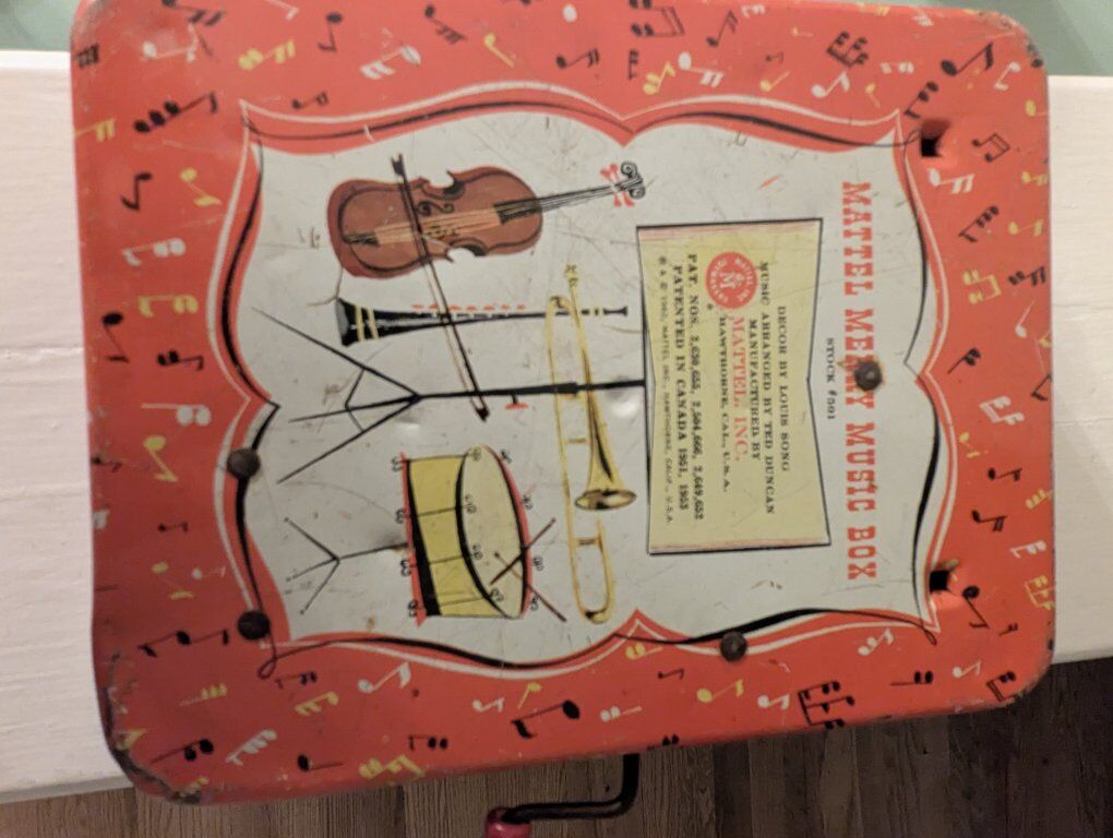 VenmoThis is a vintage Mattel Merry Music Box from 1953. It is remarkably good condition. Minor scratches, no rust. Music plays when it decides to. I think it's based on the ambient temperature. It is a tin lithograph musical toy featuring an organ grinder, a monkey, and a child dancing. . It was manufactured by Mattel, Inc. in Los Angeles, California. The original stock number is #501.