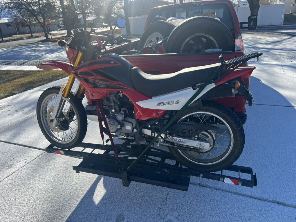 VenmoThis has been a fun bike, but I’ve grown out it. It runs very well and is a great street legal, beginner bike. It has a new ignition/hazards switch and the front tube is new. The battery was replaced in the spring with a new lithium battery. The kick stand is broken. The bike rack is also available for those interested. It would make for a great Christmas present for anyone looking to learn to ride. I would consider trading for a Yamaha or Honda 4x4 utility quad, OBO.