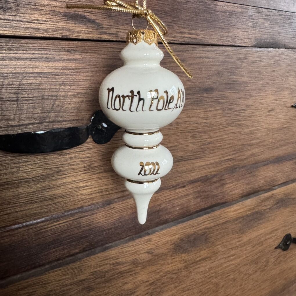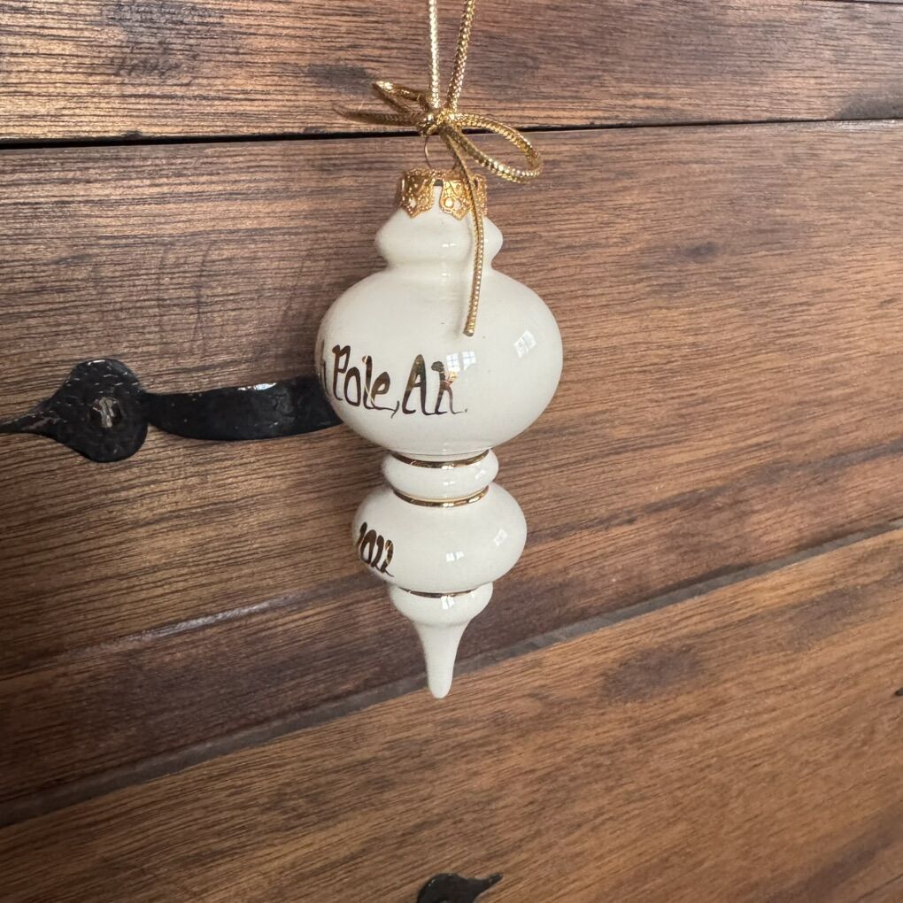 North Pole Alaska Reindeer Tracks Handcrafted 24kt Gold Trim Christmas Ornament 2022