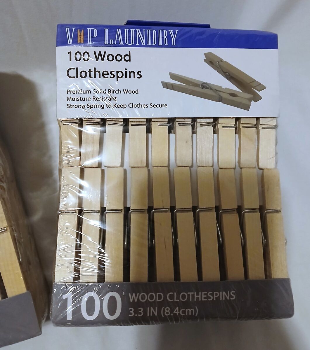 Venmo2 packs of wooden clothespins, 100 in each package. Still unopened. Made from birch wood. Great for hanging laundry, photos, or use for crafts. Or use for plugging your nose, though speaking from personal experience I can say sometimes the smell is less uncomfortable than the clothespin. $2 each package. Cash or venmo. Check out my other listings!
