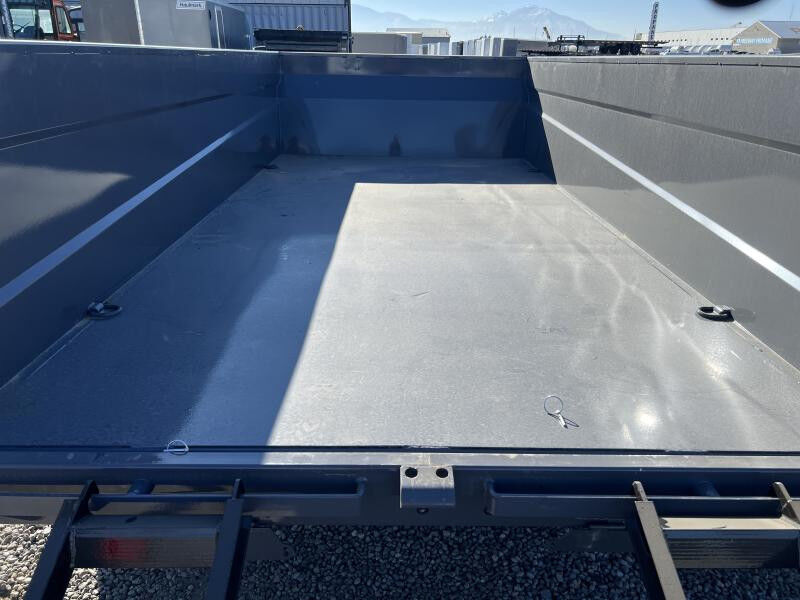Stock #: RM1712 Trailer Specs: Color: Shadow Grey Powdercoat Overall: Length: 19'0" Width: 8'6" Interior/Bed: Length: 14' Width: 7' Side Height: 32" Weight: 4,608 lbs. | GVWR: 14,000 lbs. | Payload: 9,392 lbs. Axle(s): 7,000 lb. Dexter Spring Braked Axle w/ EZ Lube Hubs Tire/Wheel: ST235/80R16 | Load Range E Coupler: Type: Bumper Pull | Size 2 5/16" | 7-Way 12V Connector 8"x13lb I-Beam Main Frame | 3" Channel Cross-Members | 16" OC 5 Year Dexter Axle Warranty 3 Year Structural Warranty 1 Year Limited Warranty Standard Features: 7 Cubic Yard Capacity 12G Steel Side Walls w/ Reinforced Rails 9G Steel Floor Plate (4) Welded D-Rings Power Up/Down KTI Hydraulic Pump 5" Hydraulic Cylinder w/ Scissor Lift Rear Barn & Spreader Gate 10K Drop Leg Jack Safety Chains All-Weather Wiring Harness Breakaway System w/ Charger LED DOT Approved Lights Powdercoated WASATCH TRAILER SALES - LARGEST TRAILER SELECTION IN UTAH Springville: (801) 528-1581 | 1180 S 2000 W, Springville UT, 84663 View More Inventory: www.wasatchtrailer.com