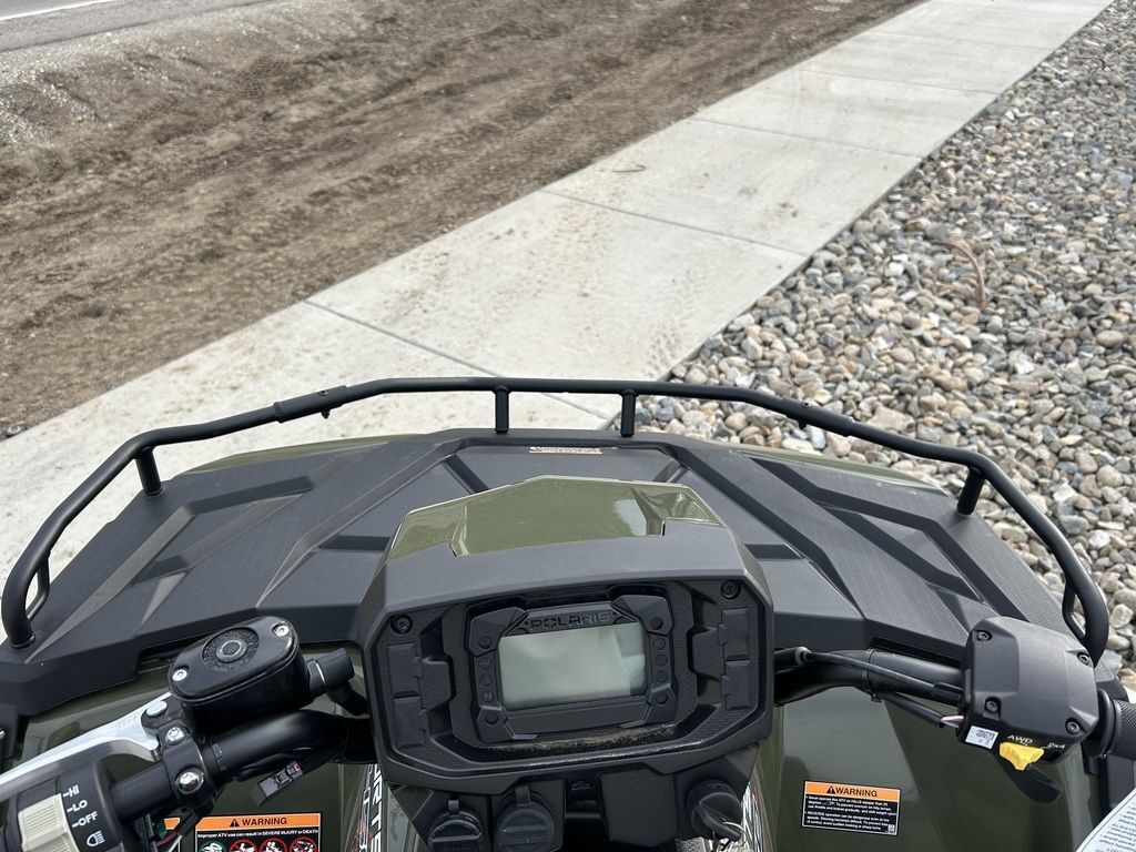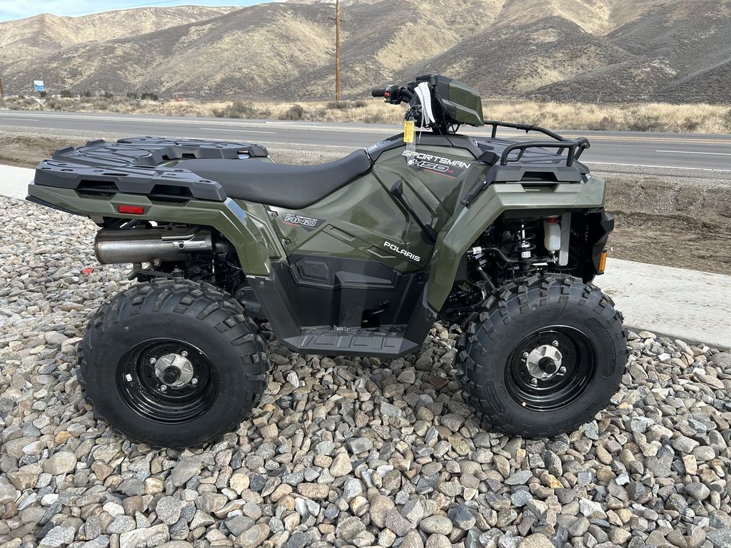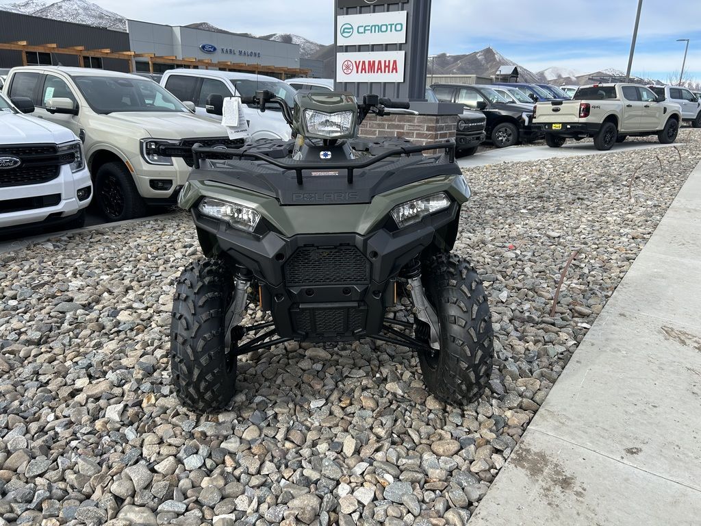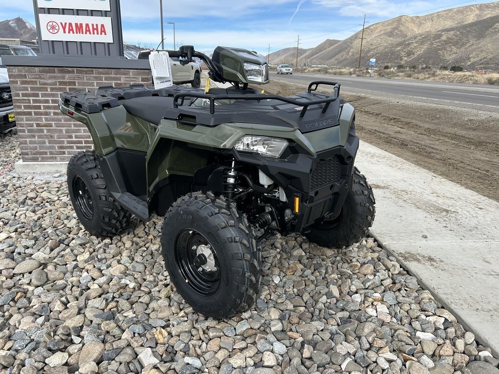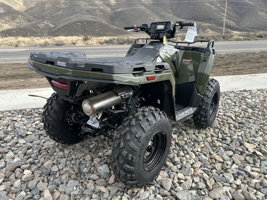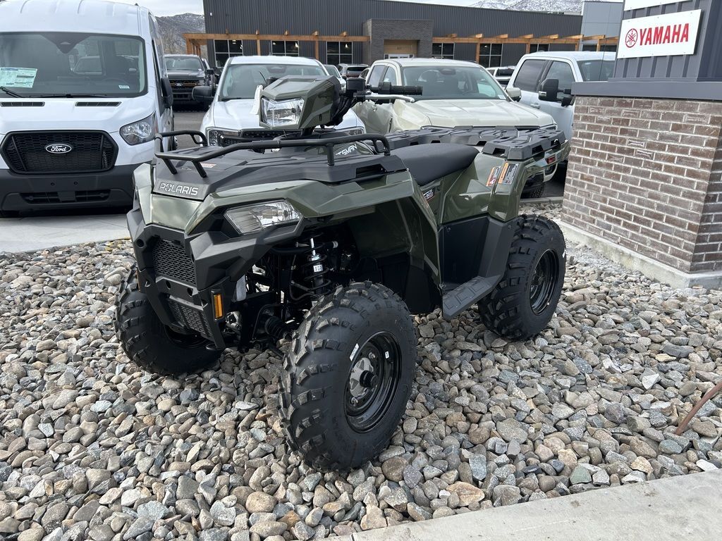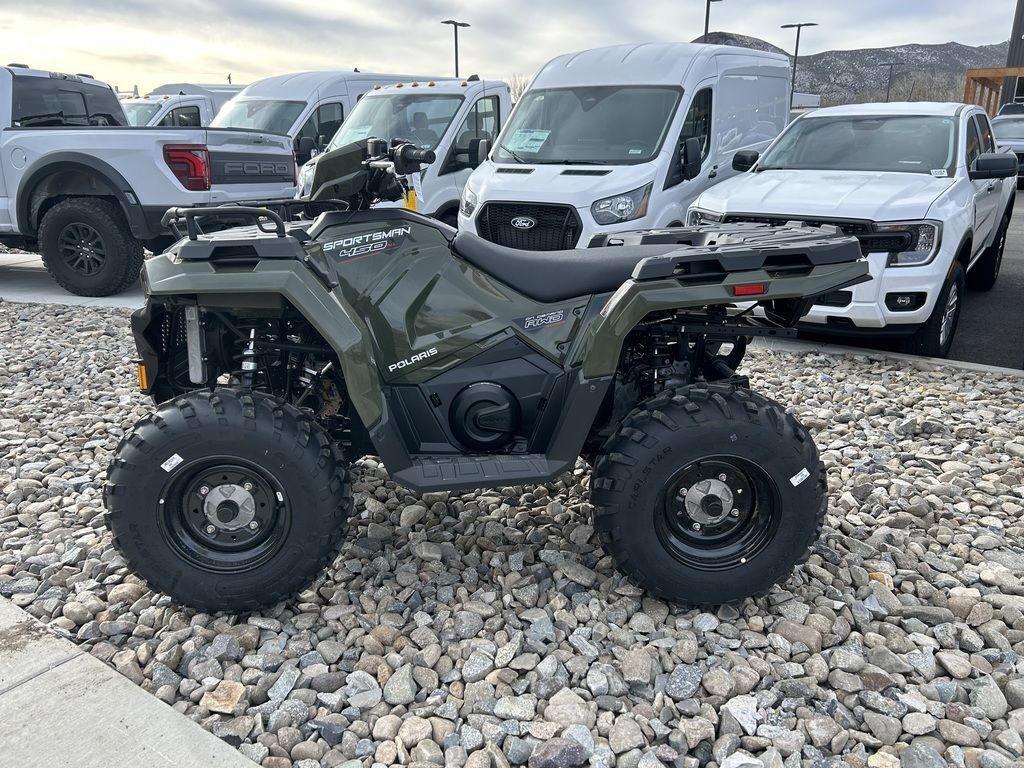 2025 Polaris® Sportsman 450 H.O.SPORTSMAN 450 PACKS MORE INEquipped with industry-leading towing, ground clearance and 5 gallon storage, the 450 adds more capability for work or play.Features may include:STRONGRelentless, job-ready features for the daily grind.Improved Fit and FinishNew shifter close-off and better seat fitment providing overall improved showroom appeal and enhanced ride comfort.Upgraded Clutch SealingTake on more trails with confidence with improved clutch airflow to help keep water out.1,350 Lb. TowingPull trailers, and other vehicles, with confidence thanks to a work-ready towing capacity.25" 6-Ply TiresEndure rough terrain with puncture-resistant walls and 12" steel wheels.33 HorsepowerSolid power for all-day riding in difficult conditions—or for when you just want to let it rip.SMOOTHLegendary Sportsman suspension delivers the smoothest ride to absorb bumps of all sizes.SuspensionIndustry-leading Sportsman suspension delivers more traction than the competition and helps you ride over even bigger obstacles.On-Demand AWDThe industry's fastest-engaging On-Demand AWD. Only Polaris delivers instant power when the slightest wheel spin is detected.Trail-Taming ClearanceEquipped with 11.5" of ground clearance to help you travel smoothly over rough terrain.Unmatched TravelNo one can match our suspension with a class-leading 9450 STANDARD FEATURESFront Rack Extender33 HP Engine48" Width11.5" Ground Clearance8.2"/9.5" Front/Rear Suspension Travel25" Tires with 12" Steel Wheels1,350 Lb. Towing Capacity with Factory-Installed Hitch ReceiverCombined 270 Lb. Front & Rear Rack CapacityPre-Wired for Handwarmers and WinchRIDE COMMAND+ with Accessory Purchase