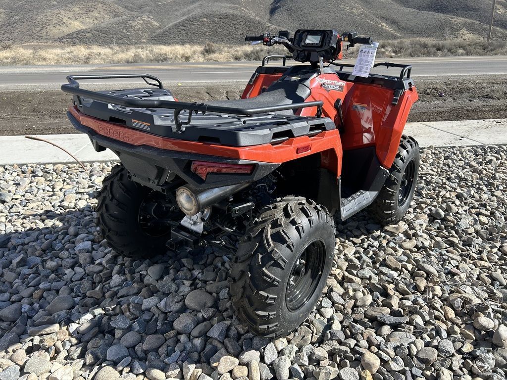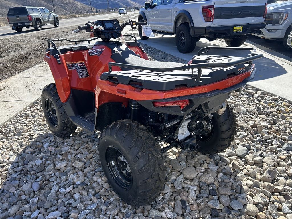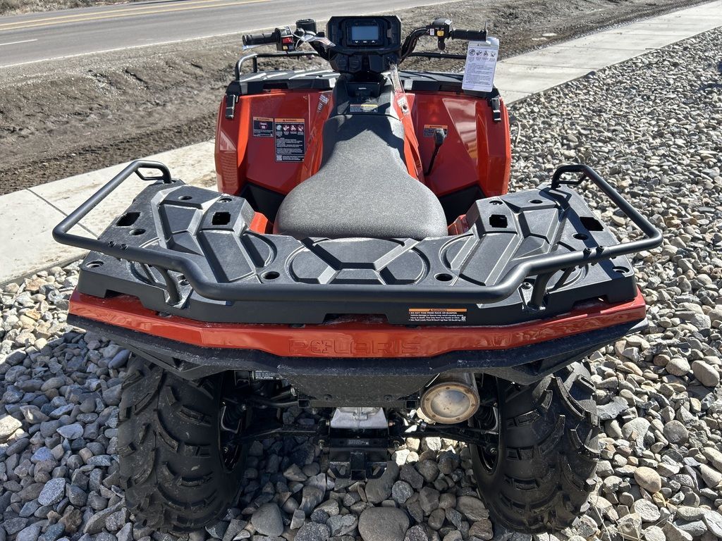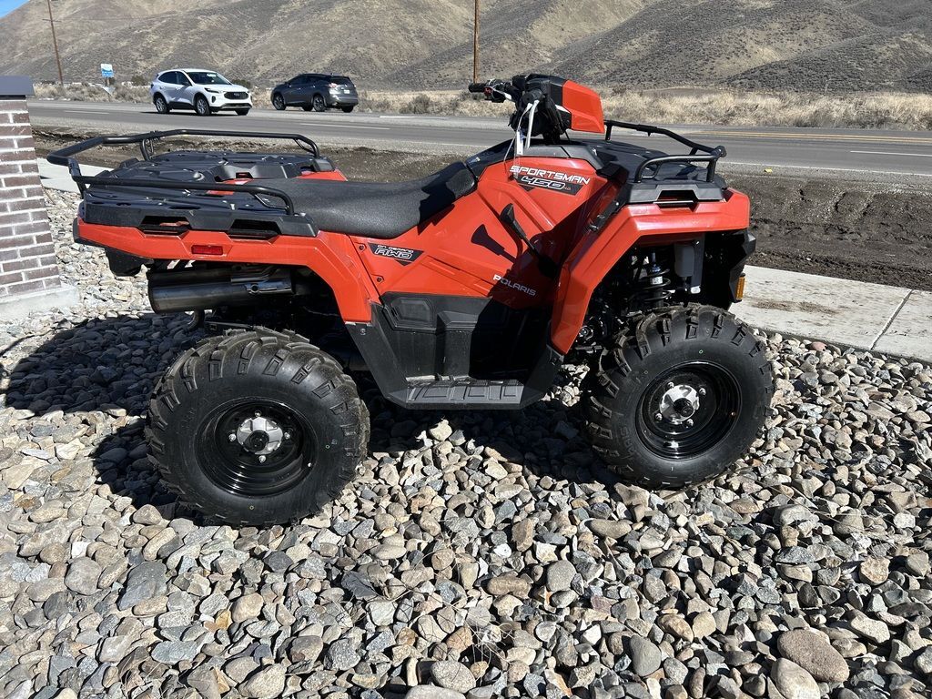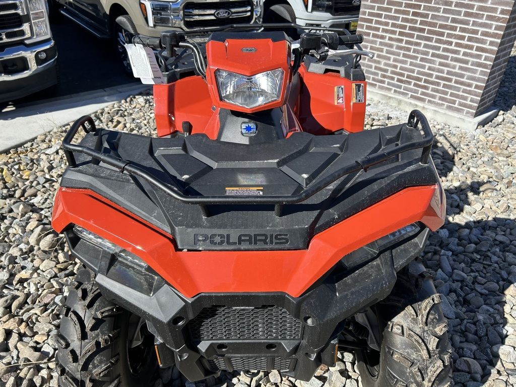 2025 Polaris® Sportsman 450 H.O. EPSSPORTSMAN 450 PACKS MORE INEquipped with industry-leading towing, ground clearance and 5 gallon storage, the 450 adds more capability for work or play.Features may include:STRONGRelentless, job-ready features for the daily grind.Improved Fit and FinishNew shifter close-off and better seat fitment providing overall improved showroom appeal and enhanced ride comfort.Upgraded Clutch SealingTake on more trails with confidence with improved clutch airflow to help keep water out.1,350 Lb. TowingPull trailers, and other vehicles, with confidence thanks to a work-ready towing capacity.25" 6-Ply TiresEndure rough terrain with puncture-resistant walls and 12" steel wheels.33 HorsepowerSolid power for all-day riding in difficult conditions—or for when you just want to let it rip.SMOOTHLegendary Sportsman suspension delivers the smoothest ride to absorb bumps of all sizes.SuspensionIndustry-leading Sportsman suspension delivers more traction than the competition and helps you ride over even bigger obstacles.On-Demand AWDThe industry's fastest-engaging On-Demand AWD. Only Polaris delivers instant power when the slightest wheel spin is detected.Trail-Taming ClearanceEquipped with 11.5" of ground clearance to help you travel smoothly over rough terrain.Unmatched TravelNo one can match our suspension with a class-leading 9450 STANDARD FEATURES33 HP Engine48" Width11.5" Ground Clearance8.2"/9.5" Front/Rear Suspension Travel25" Tires with 12" Steel Wheels1,350 Lb. Towing Capacity with Factory-Installed Hitch ReceiverCombined 270 Lb. Front & Rear Rack CapacityPre-Wired for Handwarmers and WinchRIDE COMMAND+ with Accessory PurchaseEPS TRIM INCLUDES:Multi-Select Electronic Power SteeringFront Rack ExtenderRear Rack Extender