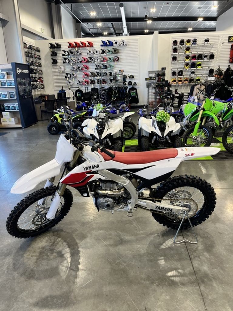 2026 Yamaha YZ450F 70th Anniversary Edition SUPREME CAPABLITY, ICONIC STYLE The pinnacle of off-road four-stroke performance wrapped in iconic Yamaha 70th Anniversary livery. Get the unmatched capability of the YZ450F in jaw-dropping commemorative style. Features may include: ENGINE Tri-shaft transmission layout vertically stacks the transmission shafts for a lighter, more compact transmission. The YZ450F's advanced disc spring clutch design is compact, durable with smooth engagement and excellent feel. An adjustable Launch Control System controlled through the Power Tuner App optimizes launches when the gate drops. Optimized intake path draws air from under the side covers and seat allowing for a slimmer and more compact shroud area. A three-level Traction Control System selectable within the Yamaha Power Tuner App maintains ideal rear wheel traction. Yamaha's industry-leading Power Tuner App offers the ability to tune air/fuel mixture and ignition timing to suit rider preference. CHASSIS/SUSPENSION An advanced aluminum bilateral beam frame strikes the perfect balance of precise cornering performance and handling stability. The YZ450F's class-leading fully adjustable Speed Sensitive front fork provides exceptional feel and bump absorption. A new KYB® shock improves damping feel and reduces bump reaction for enhanced control. A large 270mm front and 240mm rear disc combine with Nissin calipers to provide exceptional stopping power and control. The YZ450F's slim, flat, compact body and seamless, rounded features ease rider movement for improved control. The rider triangle is optimized for increased legroom, including a carefully considered handlebar position for enhanced comfort. ADDITIONAL FEATURES The YZ450F features a compact electric starter system to minimize restart delays and add convenience. Additional top-spec details include wide foot pegs, quick-adjust clutch perch and gold drive chain with YZ450F-specific chain guide.