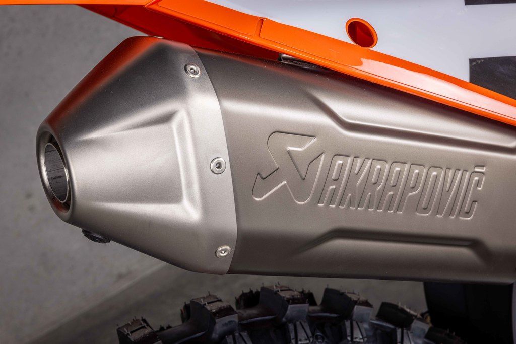 When the gate drops you need to be the first to off the line in a bid to rule (and make) the roost. The 2026 KTM 450 SX-F FACTORY EDITION boasts one of the strongest and most versatile 4-stroke powerplants in the pits, with its SOHC engine proving to be the perfect example of advanced engineering. With class-leading peak power output, and an overall engine weight of only 59 lb (26.8 kg), you'll leave the competition with more than a little mud on the face. The 2026 KTM 450 SX-F FACTORY EDITION features an updated Akrapovic muffler, intake, and mapping, which increases rideability while meeting the latest FIM and AMA sound regulations. Crafted from lightweight titanium, the muffler's premium finish reflects its high-performance design -- and is available exclusively on this limited-run model.