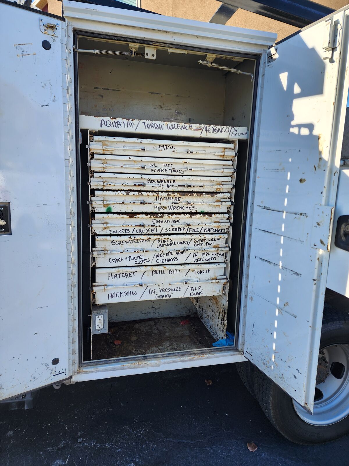 Fyi - that orange yellow stuff on the passenger side near the air compressor & on the doors isn't rust, it's an oily residue that I plan to remove soon.