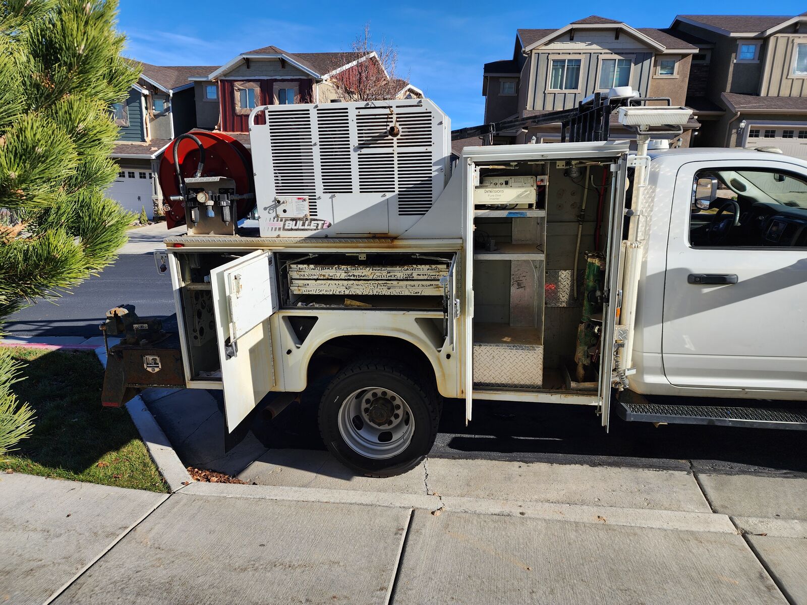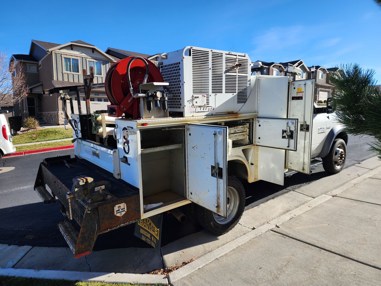 Welder, crane, mechanics truck, Stellar, auto crane, palfinger, imt, liftmoore, Miller welder, Ford F550, f750, Ford F450, Dodge Ram 5500, Vanair, lifting, diesel mechanic, repairs