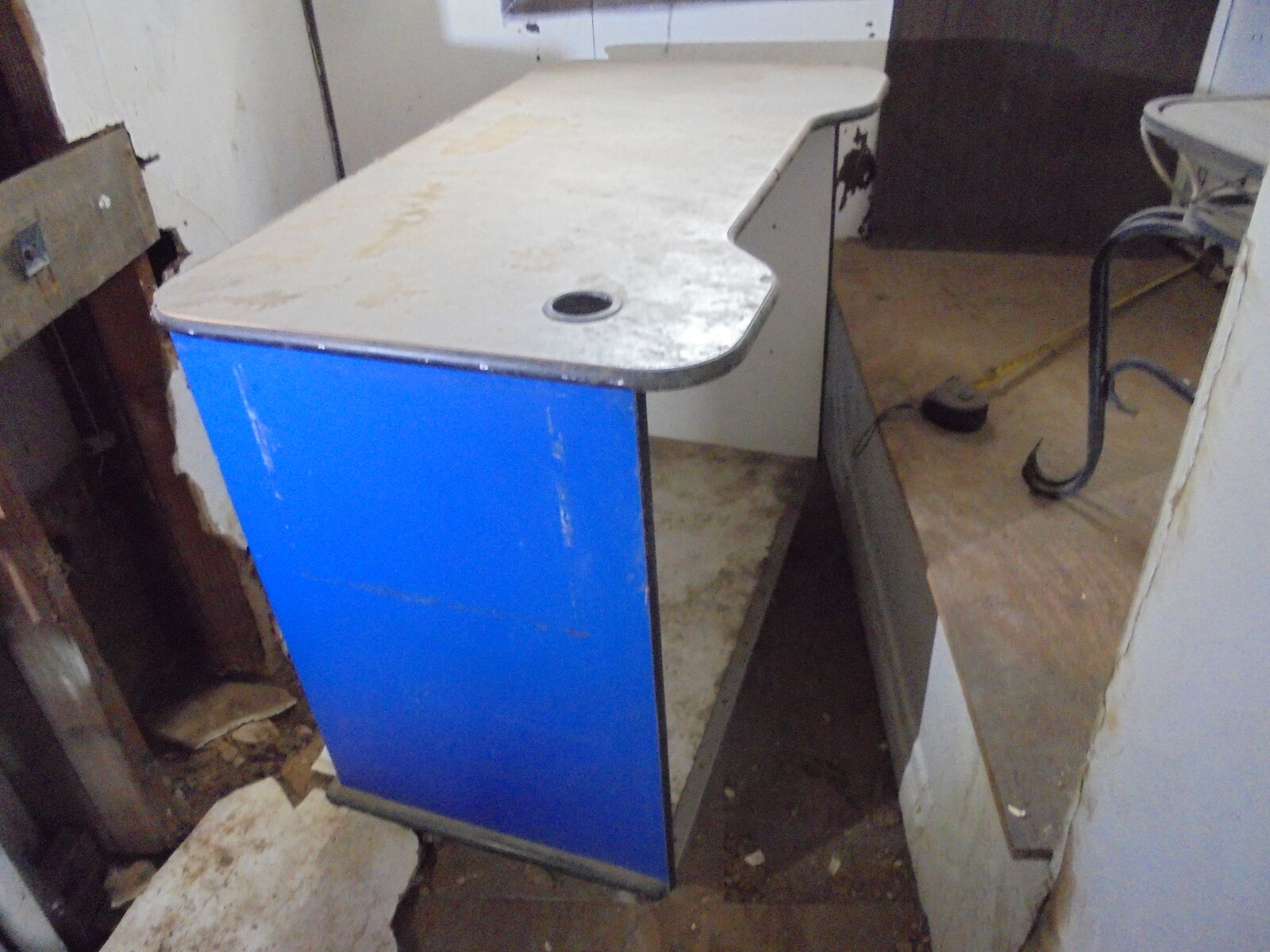 It has just been stored for years, so it needs a little clean up, but it's all very sturdy. good shape overall, some scuffs in the rubber around the top and such. The back is all open, for plenty of storage & supplies