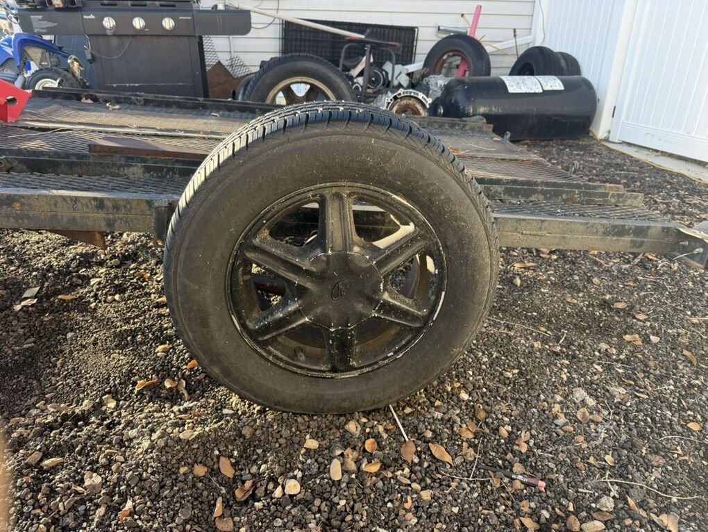 ApplePayThis is a home built motorcycle trailer it has a new 2500 lb drop axle and new tires and new lights and wiring harness this can be used to carry up to 3 dirt bikes or one large cruiser this is a heavier trailer but I use my mini van to pull it and it pulls very well willing to negotiate a little on price comes with loading ramps
