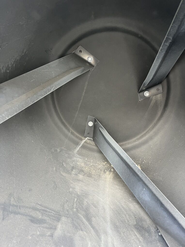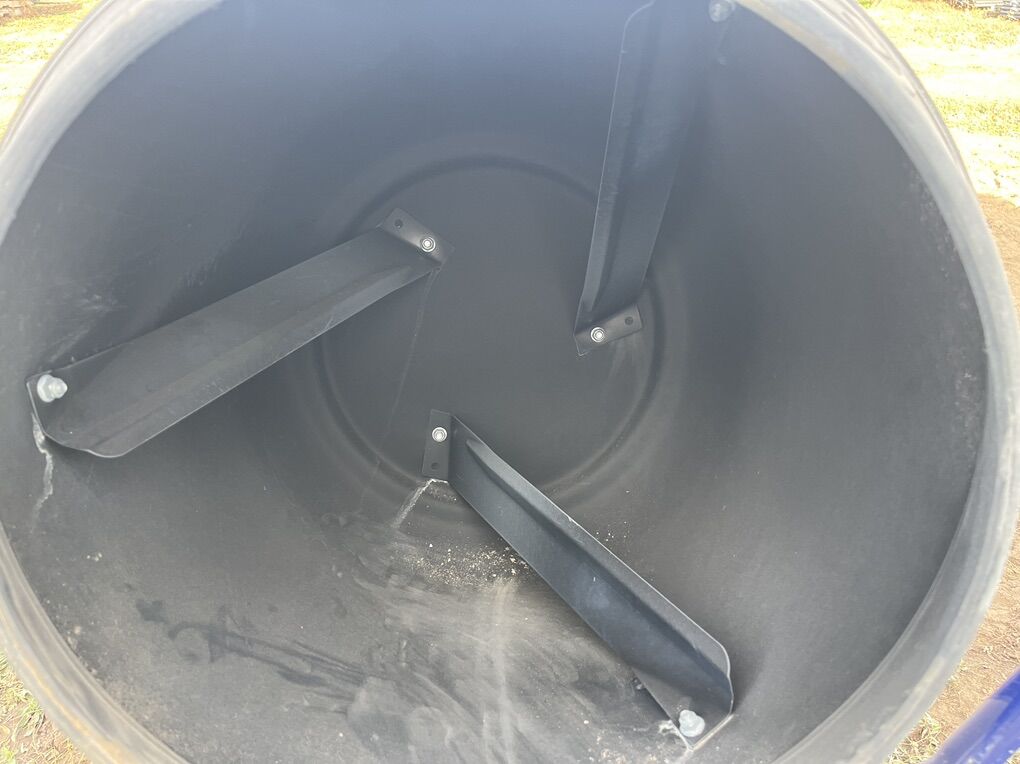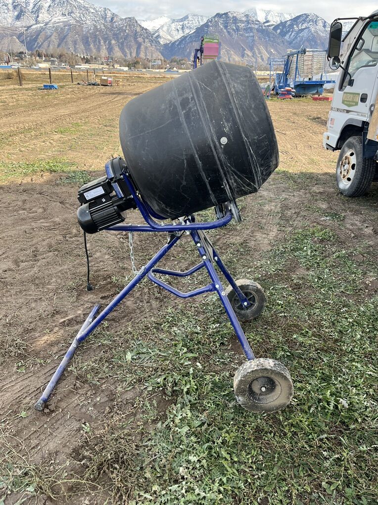 We bought and used this mixer for installing posts on a fencing project just once. It’s been stored ever since. It was cleaned thoroughly after use so inside the drum is like new. Works great for working in small batches, it’s a 4 cubic feet capacity.