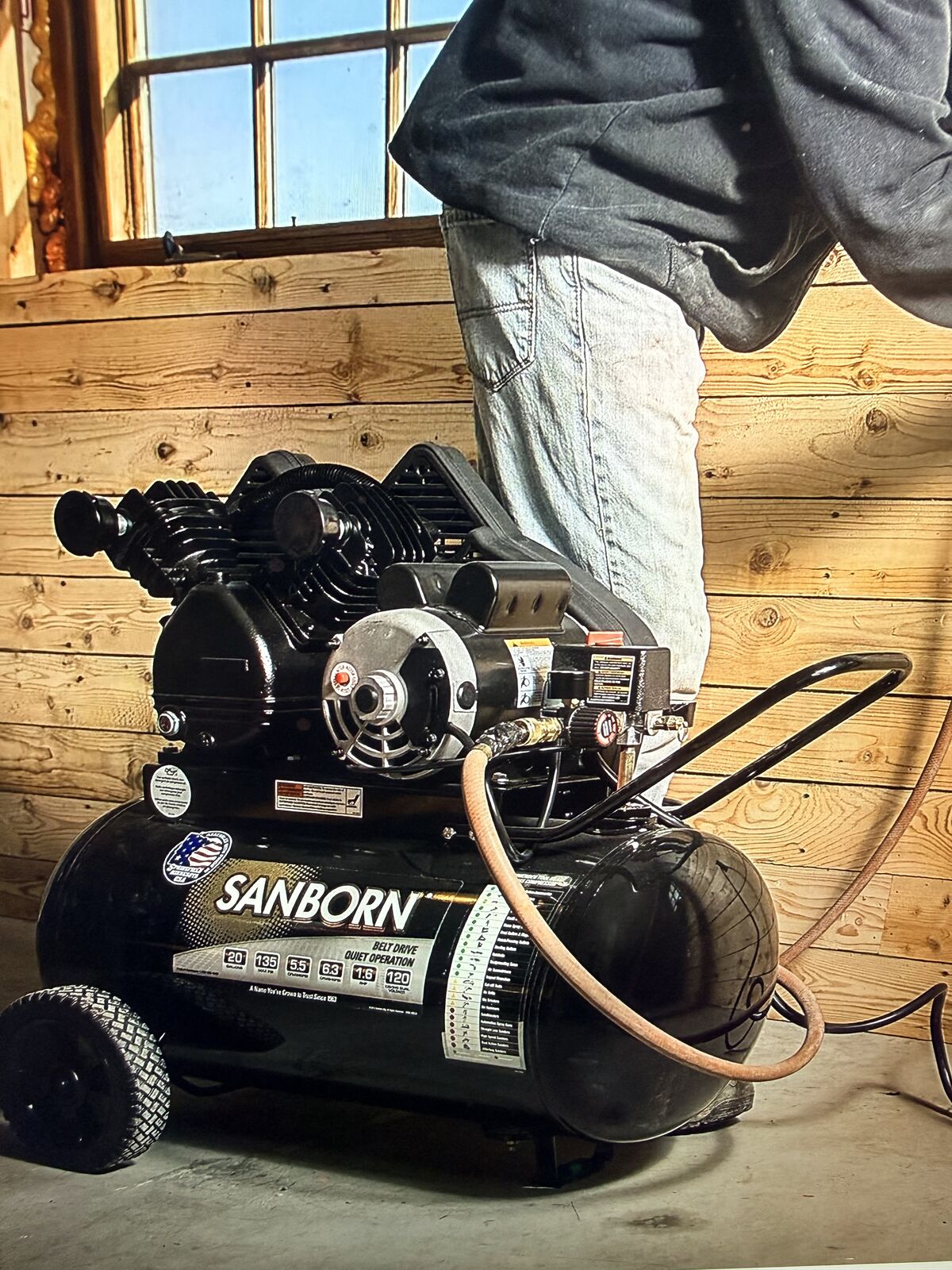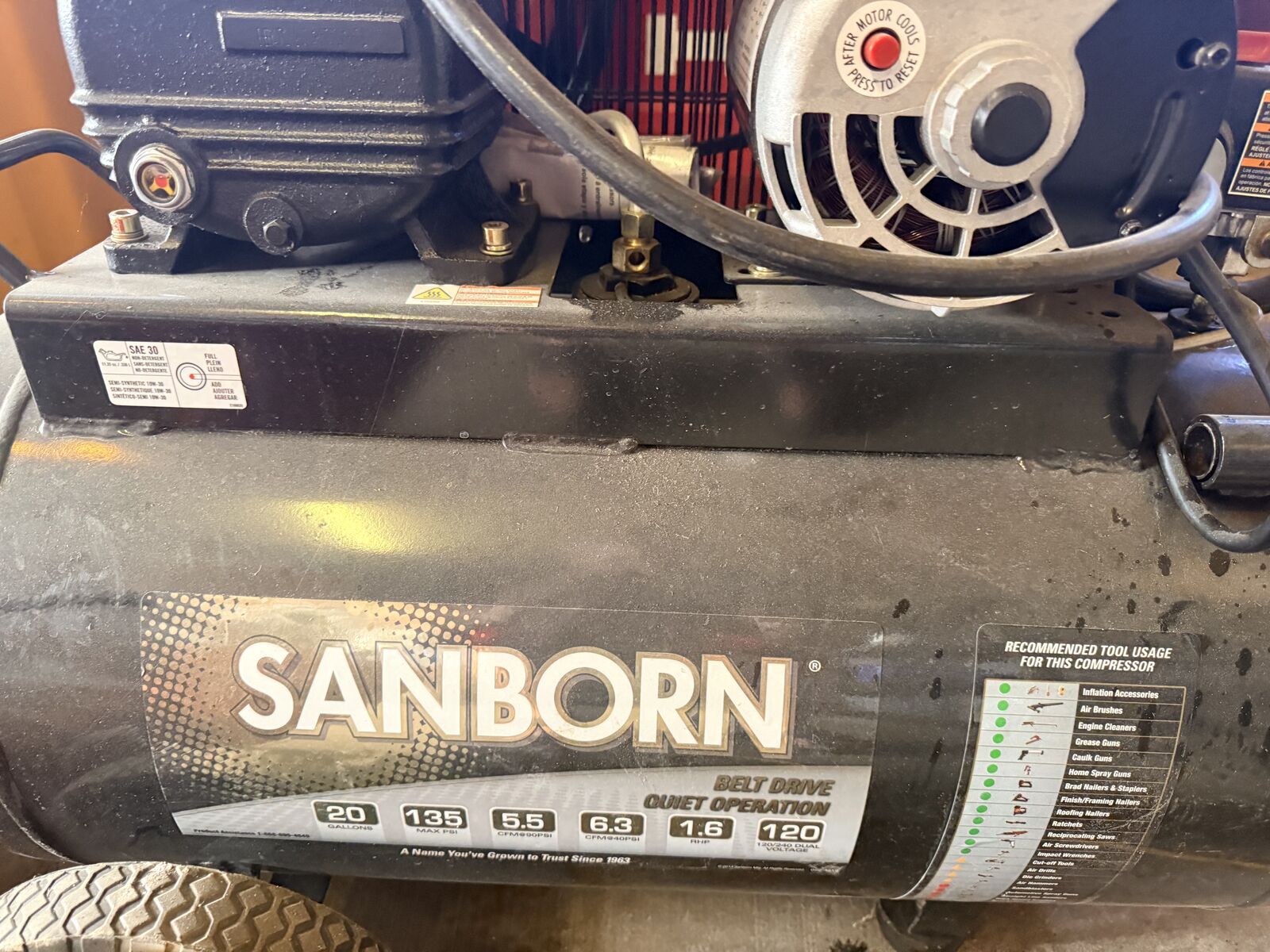 New Sandborn Cast Iron 20 gal Air Compressor 1.6hp 135psi Belt Drive Portable 120v/240