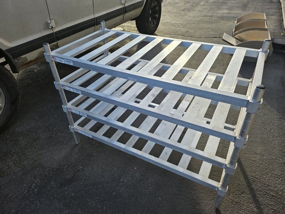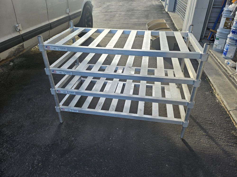 Includes both. Solid shelf units, the rack and all the tubs. Everything here is supreme quality.Nice and heavy stainless.