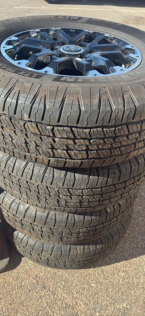 Venmo set of takeoff 18 inch factory wheels and tires from 2023 Toyota tundra 90% tread remaining $650 Wheels tires and lugs