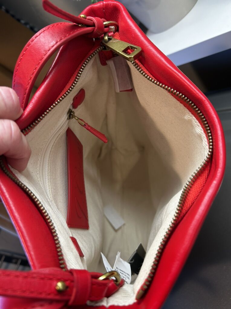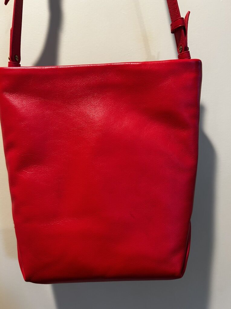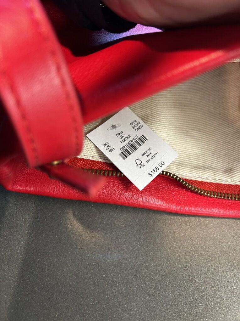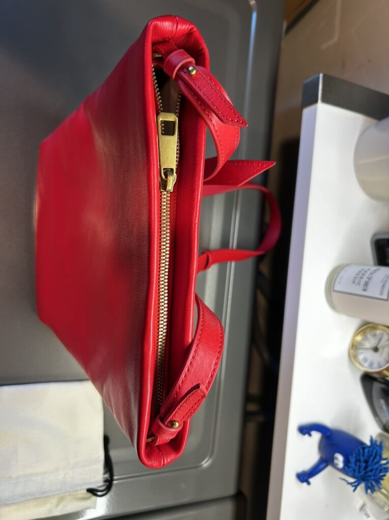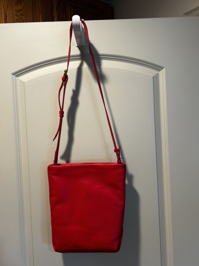VenmoNew with tags, gorgeous, red leather handbag purse with long adjustable strap from J.Crew. Beautiful Crossbody or shoulder Carrie leather purse with gold, brass zipper buckle, and Hardware. Dust bag included. Clean smoke free. Cash or Venmo. Pick up in Alpine.