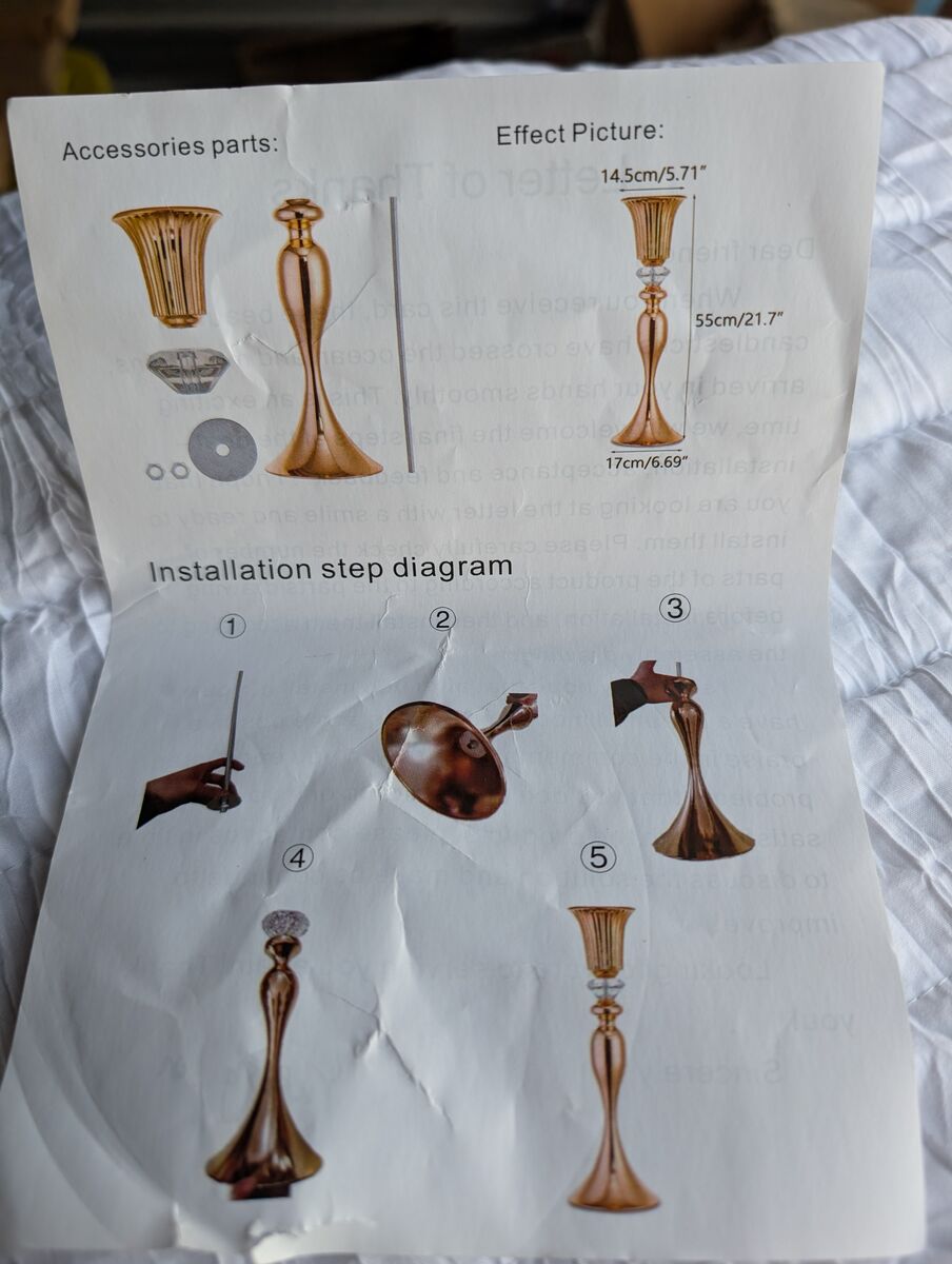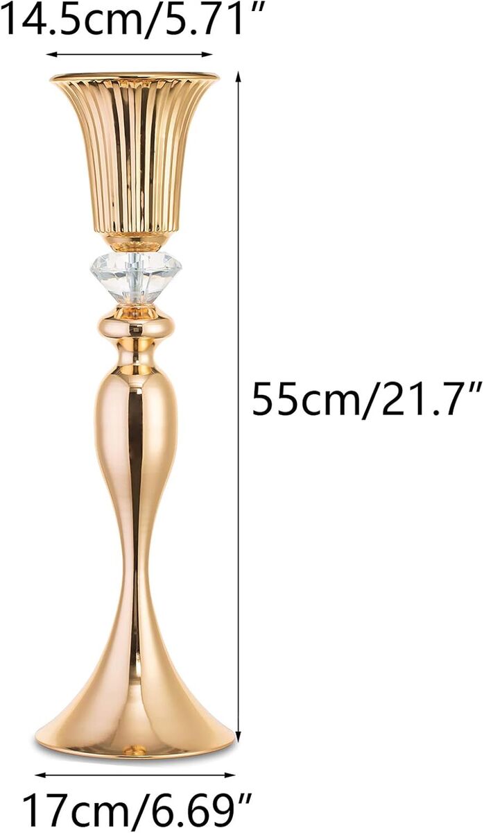 Zelle2 pack Gold Vase for Wedding Centerpieces, Metal Flower Trumpet Vase with Crystal Bead, 21.65" Tall