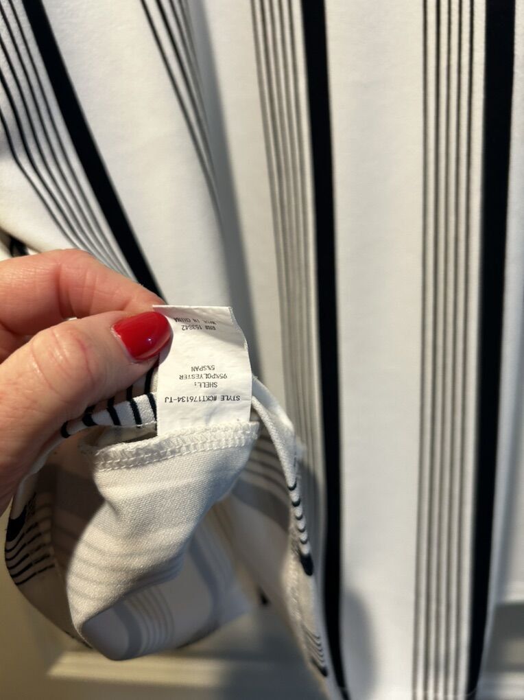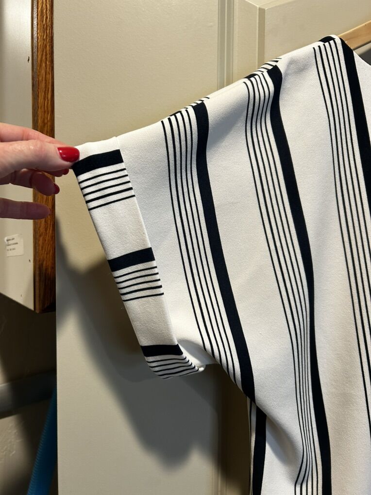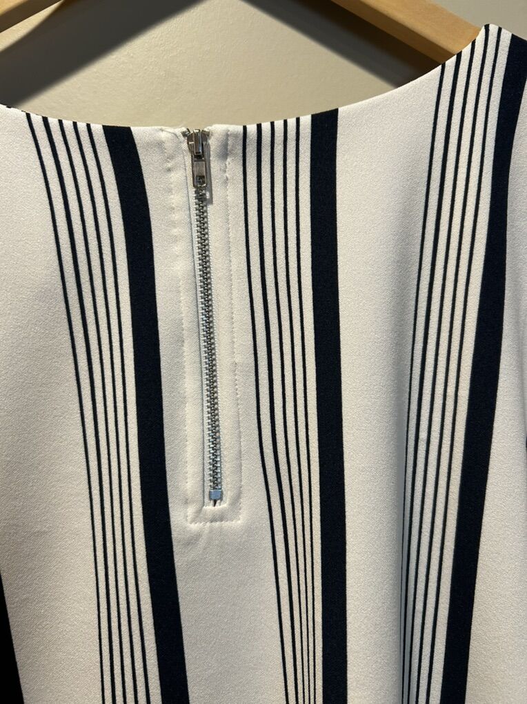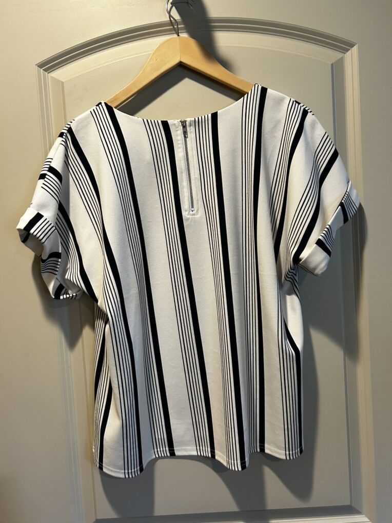VenmoWomen’s size from Nordstrom mellow day short sleeve, zip up in the back, navy and cream, striped blouse with rolled short sleeves. In like new condition, clean smoke free. Perfect for dressing up or dressing down. Machine washable can be worn alone or layered. Cash or Venmo. Pick up an Alpine.