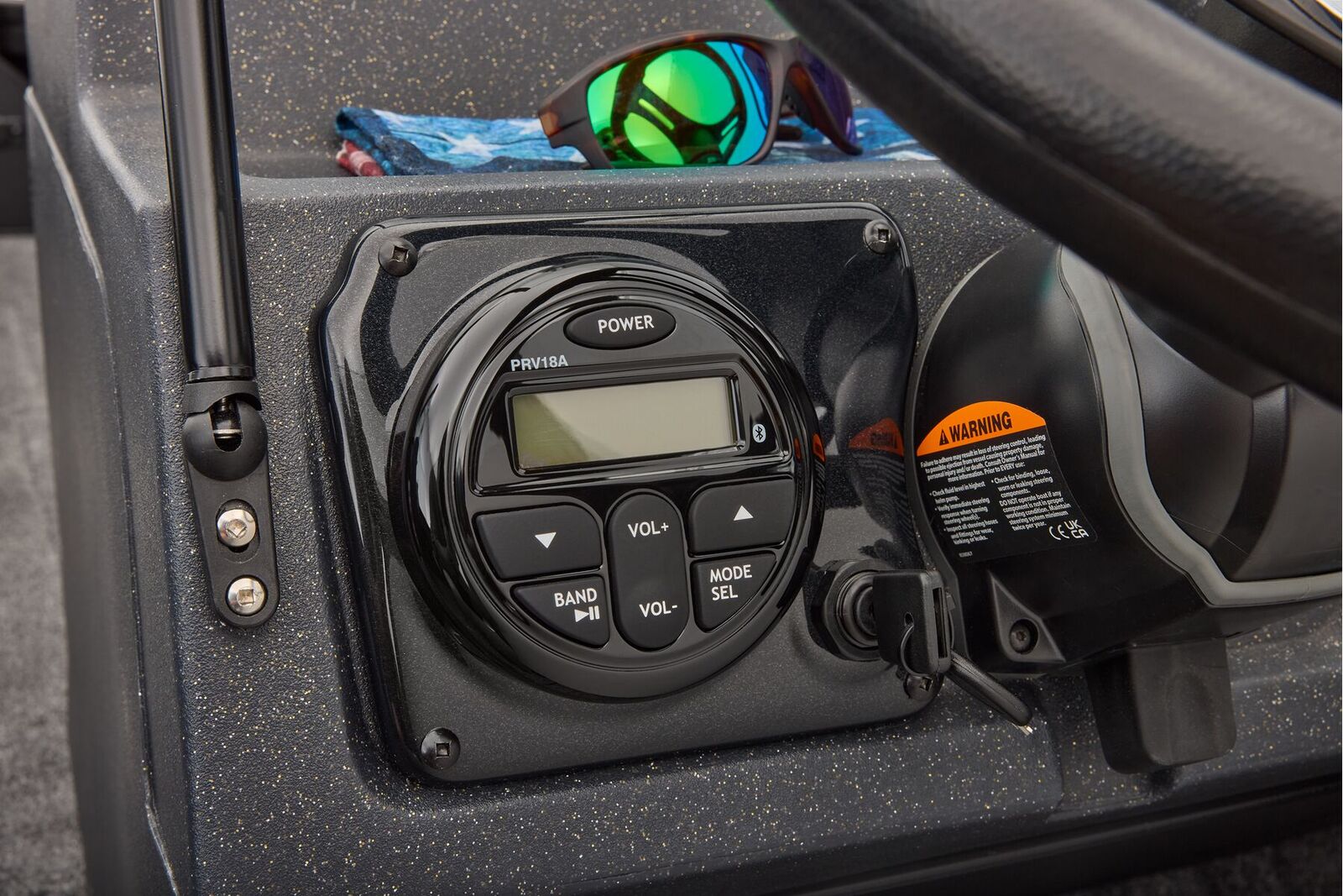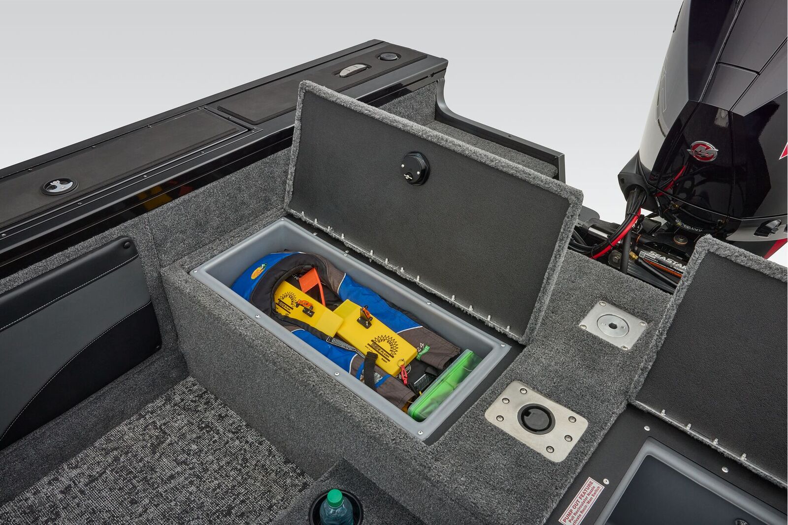 Enjoy your favorite tunes on the water with the built-in Bluetooth® audio system, adding a soundtrack to your adventures. The electric pump bilge system keeps your boat dry and clean, while the power trim system and remote outboard steering control make maneuvering a breeze.